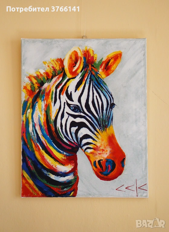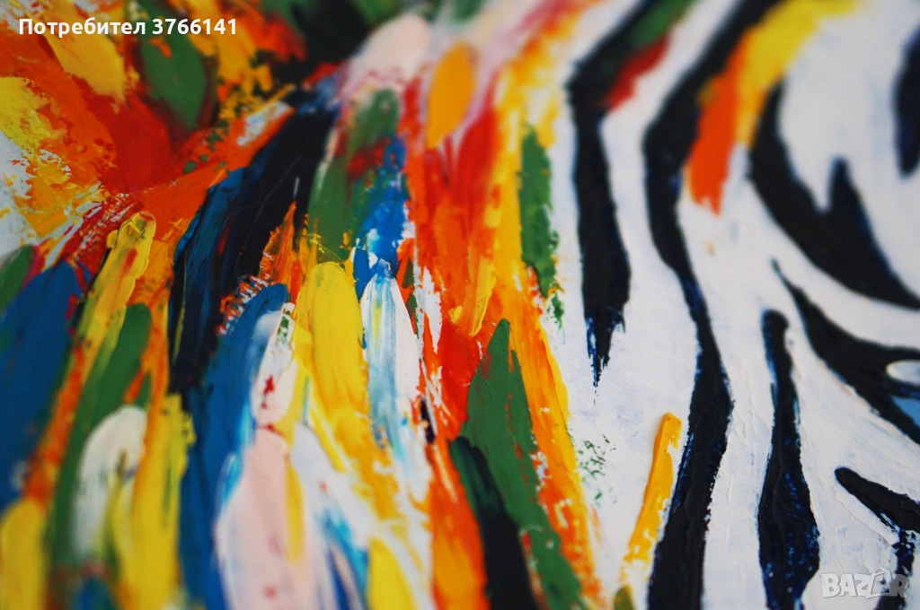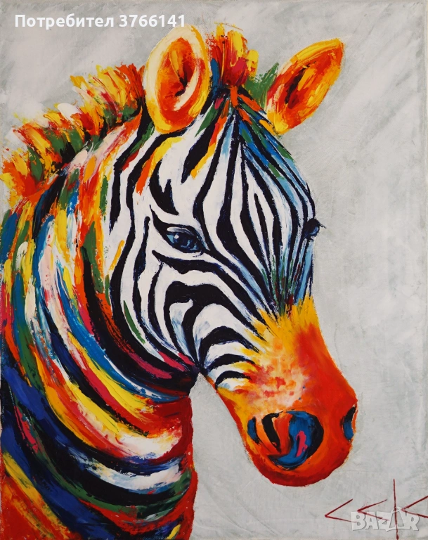 "Цветна зебра" Картина 40х50 см, Маслена живопис с шпакла → Обява 53563336