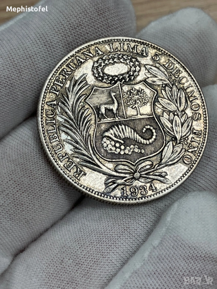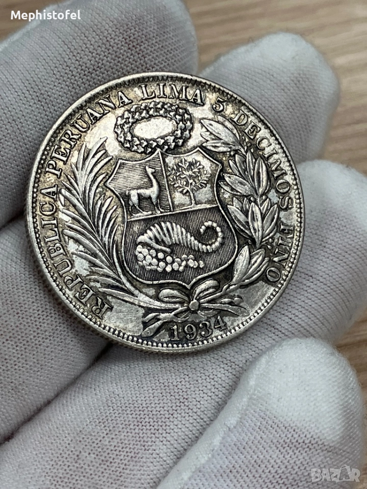 Стара и голяма сребърна монета от годините между двете световни войни - каталожно тегло 25 грама, сребро проба 0.500, диаметър 37 мм, назъбен гурт, отличен релеф с патина.