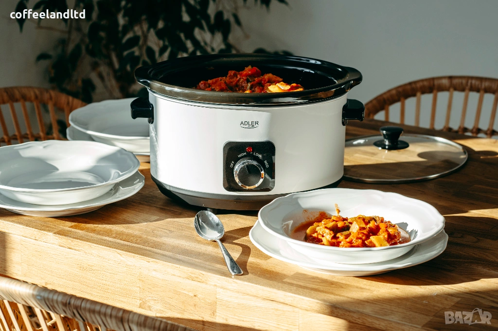 Открийте удобството и здравословното готвене с ADLER AD 6413W – практичен slow cooker (уред за бавно готвене), който позволява да приготвяте богати на вкус и