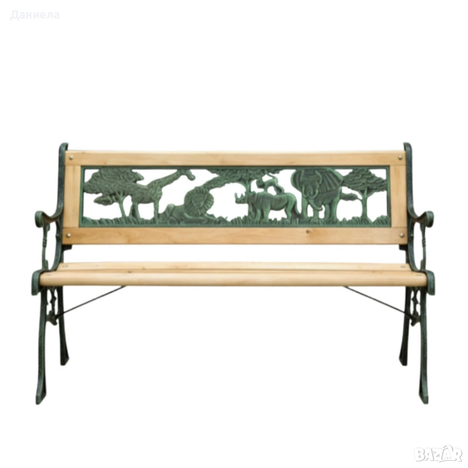 Градинска пейка за деца Техническите параметри гарантират качество и надеждност при ежедневна употреба: Дължина: 82 см Дълбочина: 39 см Височина: 50 см Материал: чугунен скелет + дървени ламели Цвят: естествено дърво / зелен декоративен чугун Конструкция: масивна, с болтове и подсилващи елементи Максимална товароносимост: 50 кг Поддръжка: препоръчва се периодично третиране на дървото и почистване на металните части