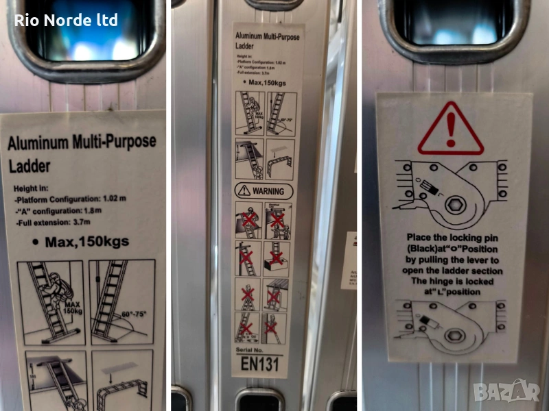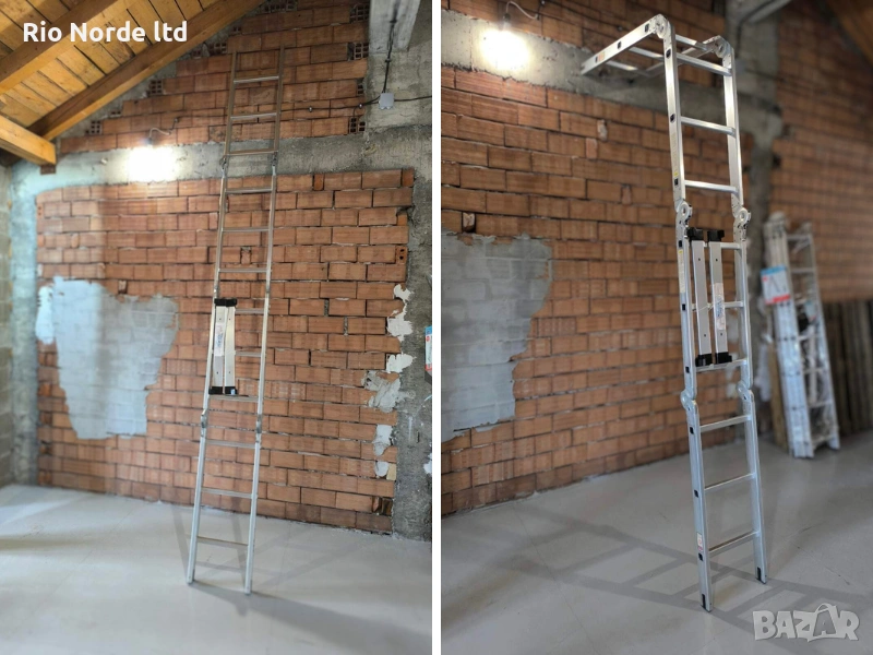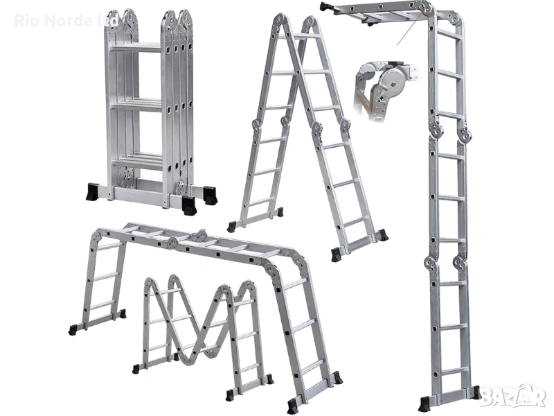 Алуминиева мултифункционална стълба – 4 рамена × 3 стъпала (вижте последната снимка)