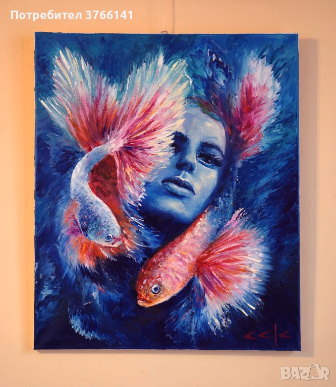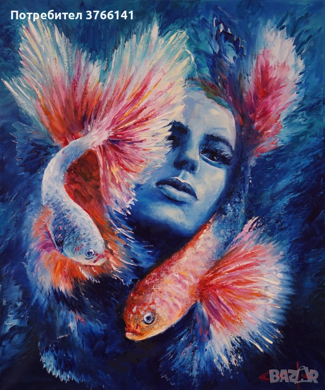 "В дълбините на необятното" Картина 60х50см, Маслена живопис с шпакла → Обява 53563469