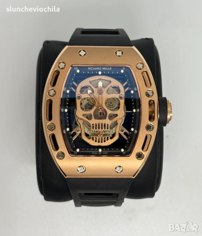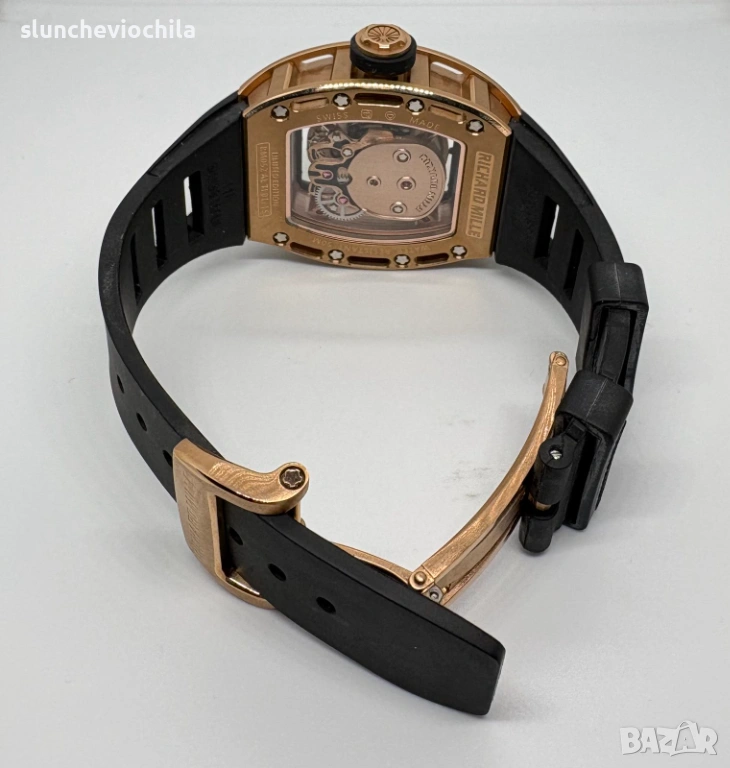 Най висок клас изпълнение. Часовник Richard Mille механизъм кварц - хронограф. Японска машина Miyota Каса масивна Стомана Стъкло сапфир кристал Размер каса: 53.7 x 41 мм Чисто нов За повече снимки и клипове ни пишете във вайбър
