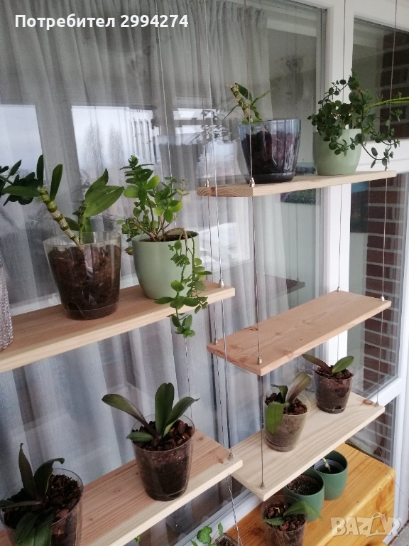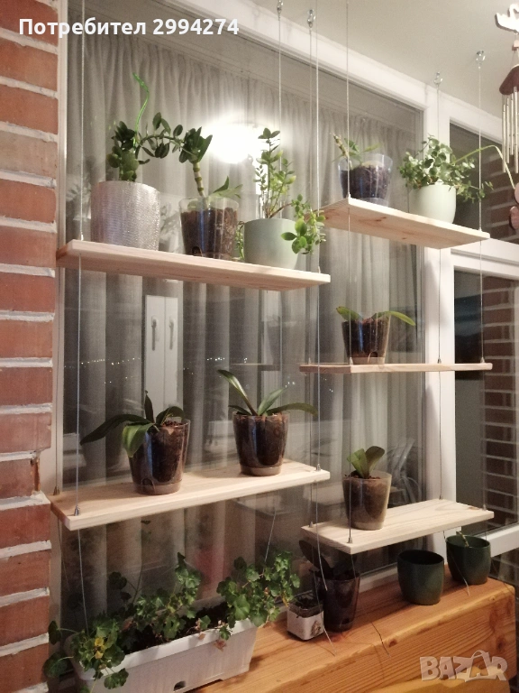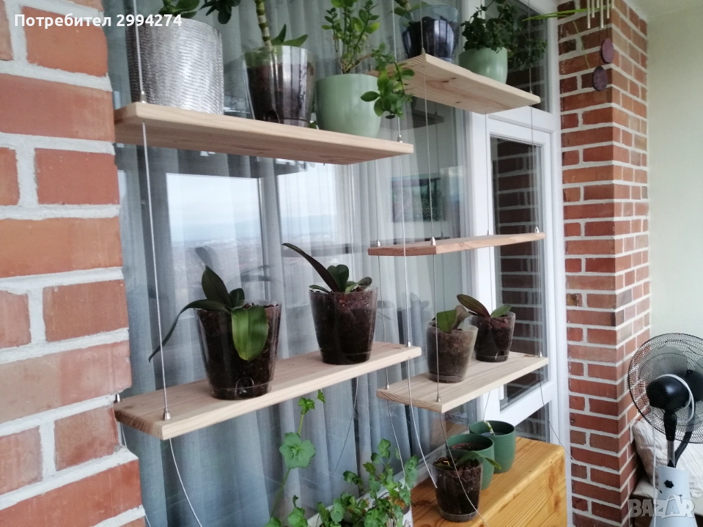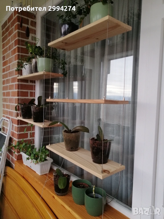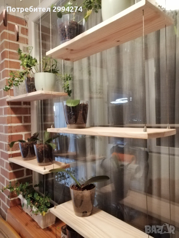 Висяща етажерка с дървени плотове