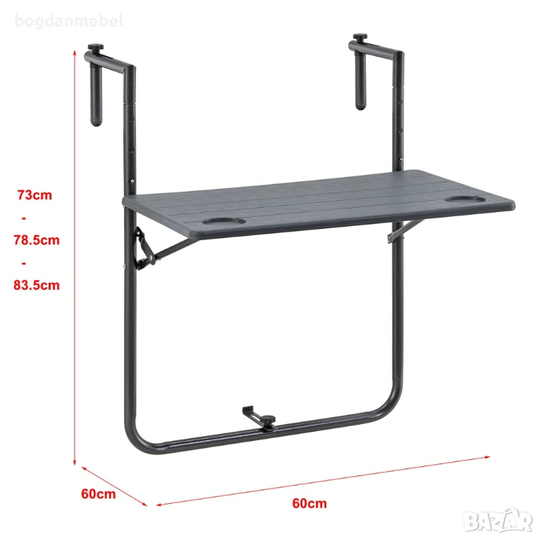 Сгъваемата висяща маса е идеална като опция за съхранение на вашия балкон. Независимо дали като масичка за кафе, растителна маса или като място за съхранение, сгъваемата маса винаги изглежда добре.