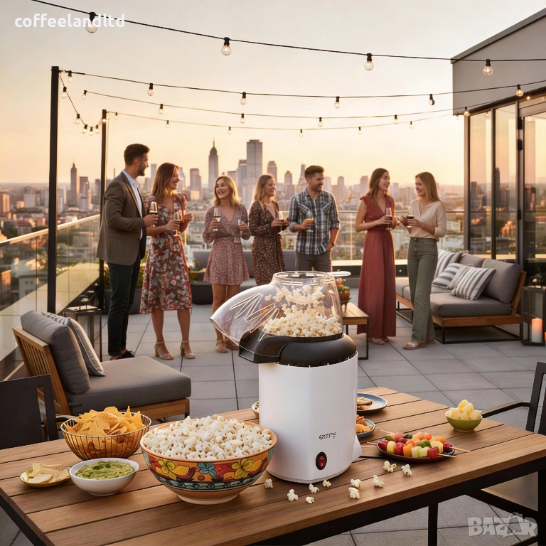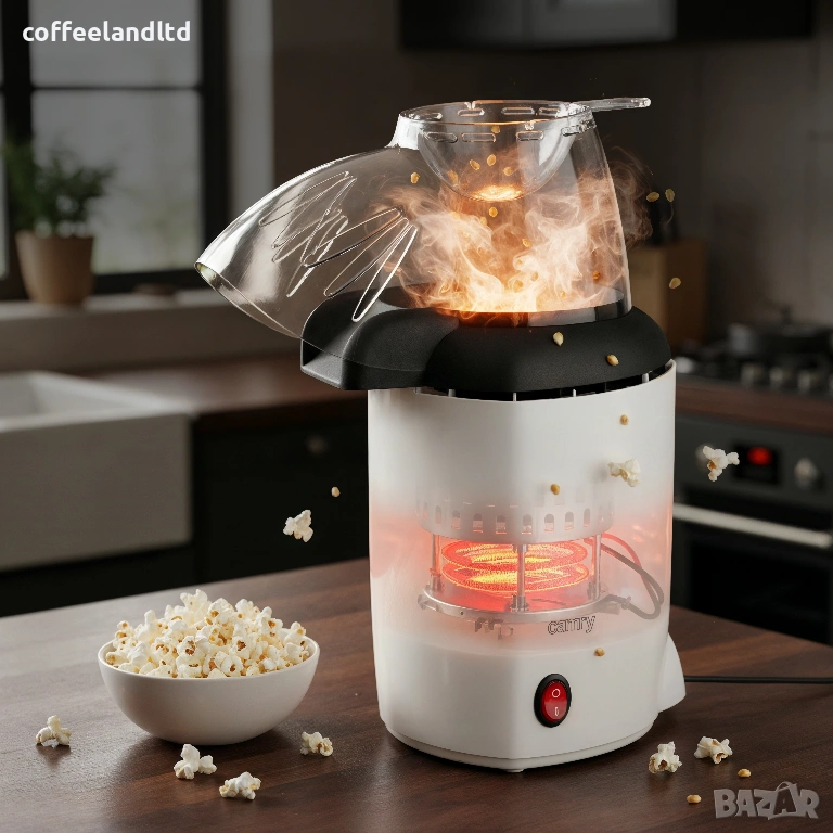Домашна машина за пуканки, която ти позволява да приготвяш хрупкави и вкусни пуканки без мазнина и олио – благодарение на специална технология с горещ въздух, която работи без добавяне на мазнини.