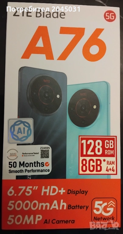 ZTE Blade A76 5G Stardust Black Model Z2469N - ЧИСТО НОВ, НЕОТВАРЯН + 2г. Гаранция