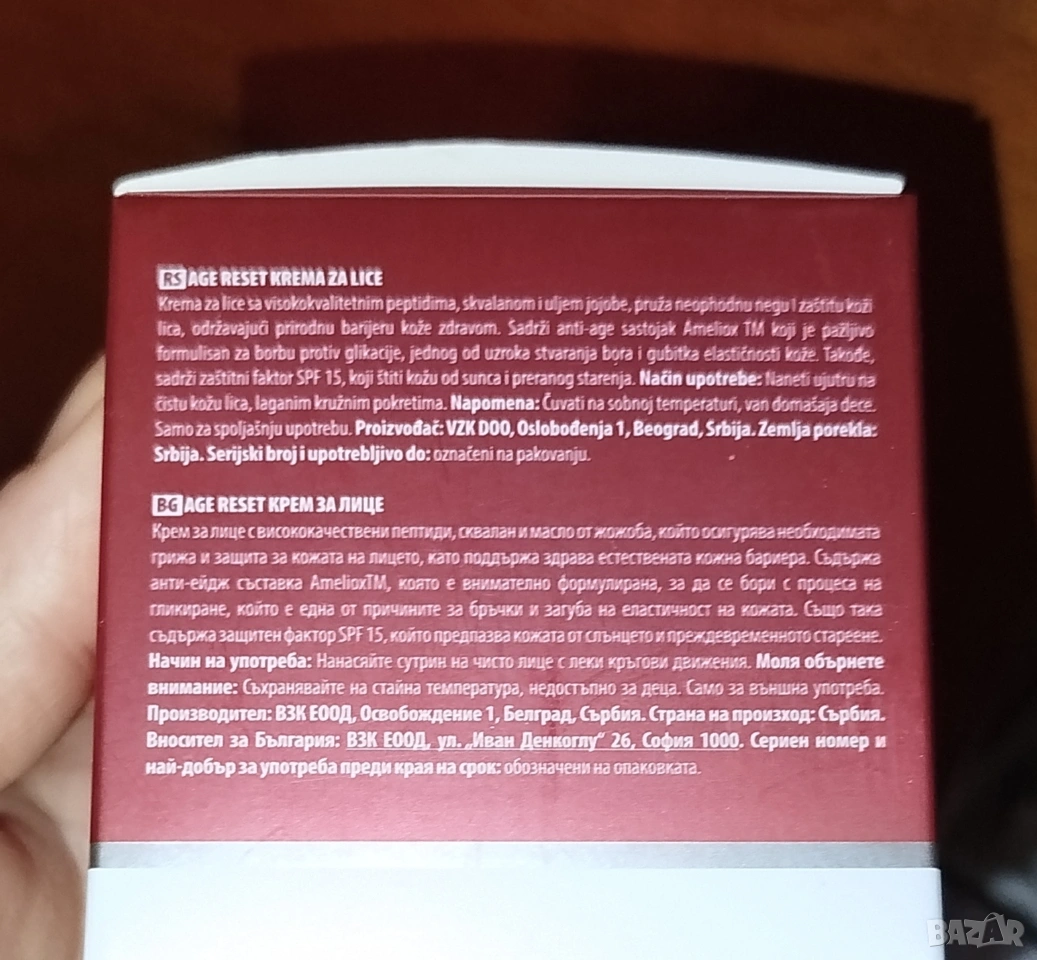 Крем за лице VZK срок на годност до 2027 г. Запечатан. -10 евро