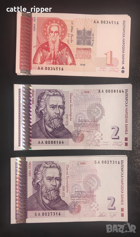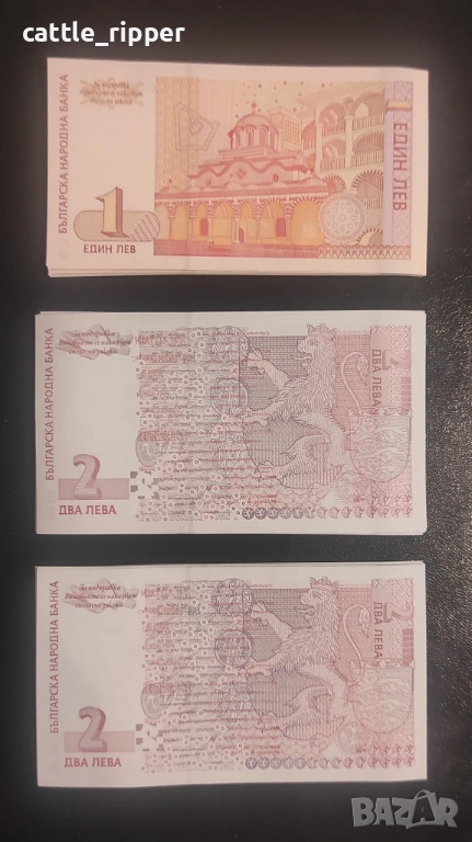 Български банкноти - 1 и 2 лева 1999 и 2 лева 2005 → Обява 53564287