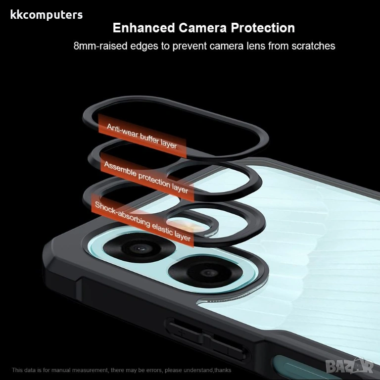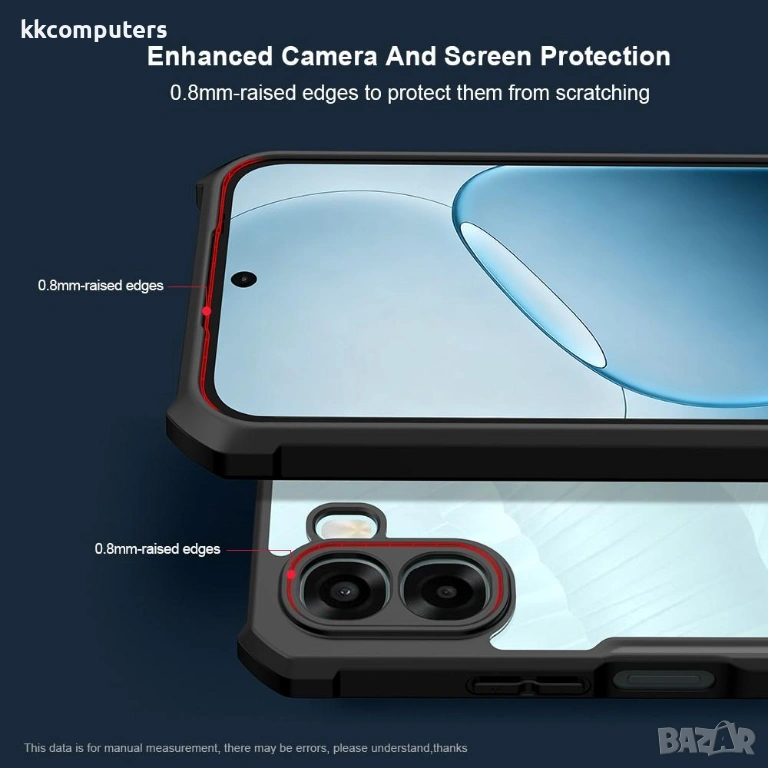 0.8 mm повдигнати ръбове за защита: Издигнатите ръбове около камерния модул и екрана (0.8 mm) предпазват от директен контакт с повърхности, предотвратявайки драскотини и повреди.