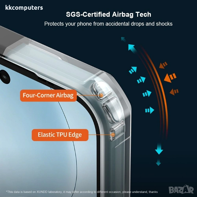 Airbag технология за защита при падане: Специалните въздушни възглавнички в четирите ъгъла действат като амортисьори, които разсейват енергията при удар и значително намаляват риска от повреда при изпускане.