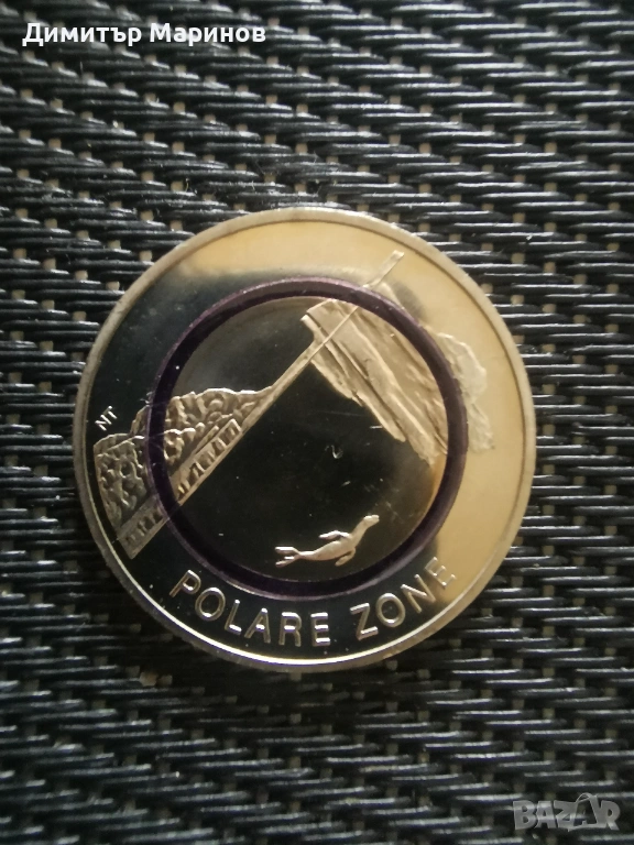Материал: Монетата е триметална, състояща се от медно-никелово ядро, външен медно-никелов пръстен и отличителен полимерен (пластмасов) пръстен между тях. За изданието „Полярна зона“ този пръстен обикновено е с лилав или виолетов цвят.