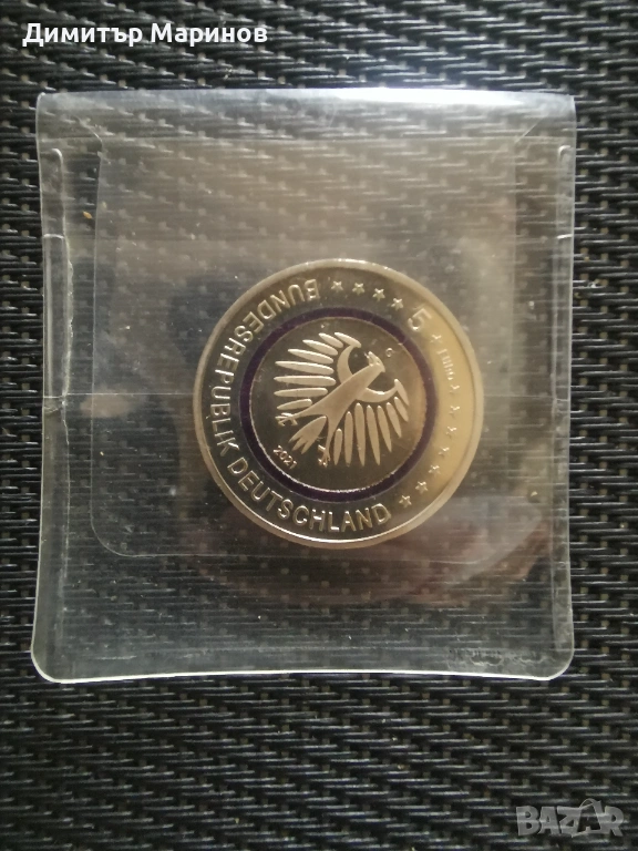 Дизайн: На предната страна (аверс) е изобразен стилизиран хералдически орел – националният символ на Германия, заобиколен от 12-те звезди на Европейския съюз, името на държавата и номинала.