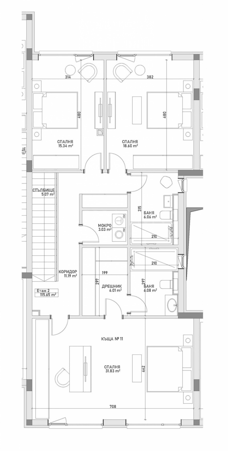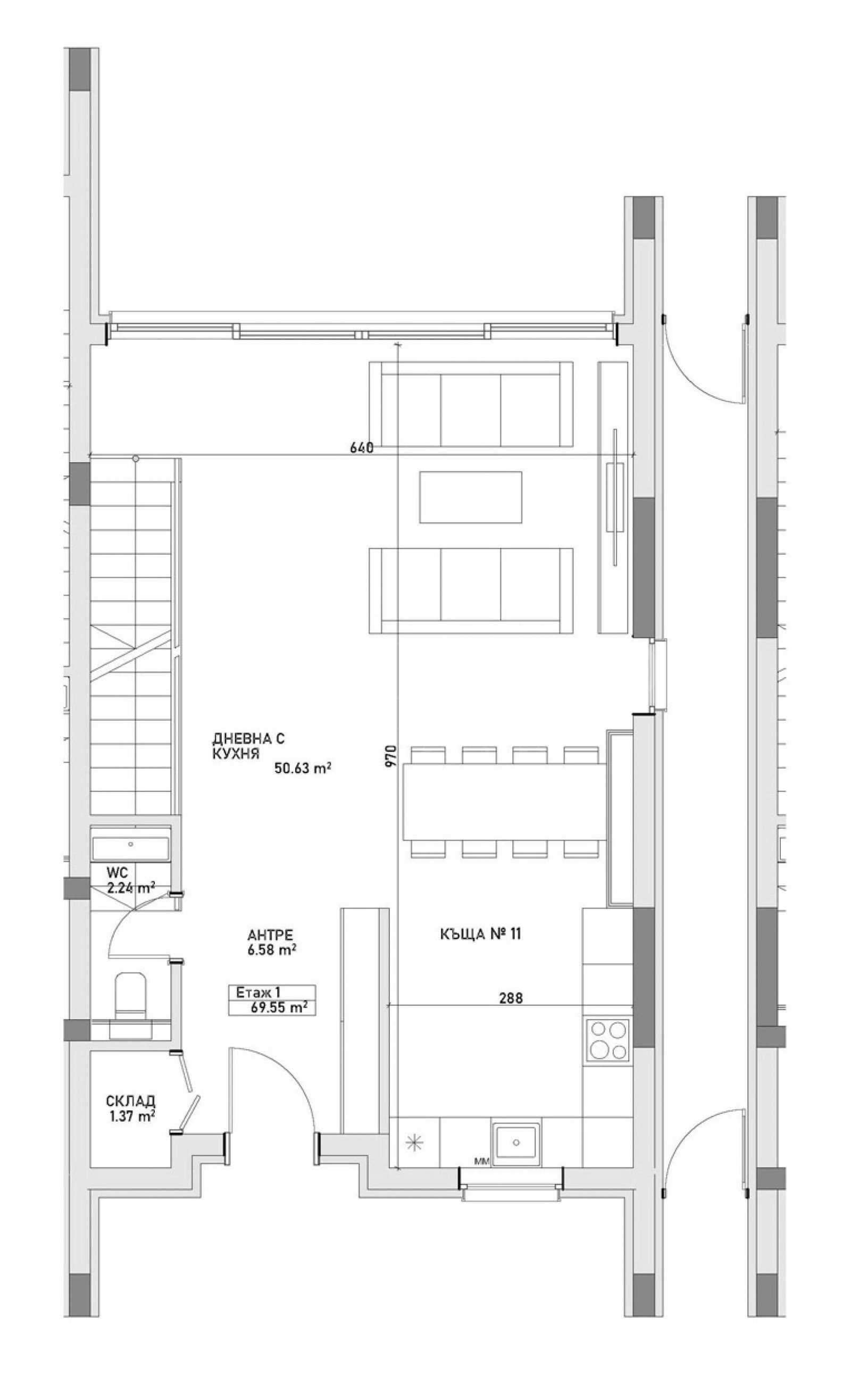 Редова къща 11 е на два етажа, с обща площ 185.20 кв.м, с двор с площ 235 кв.м.