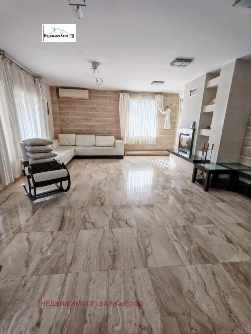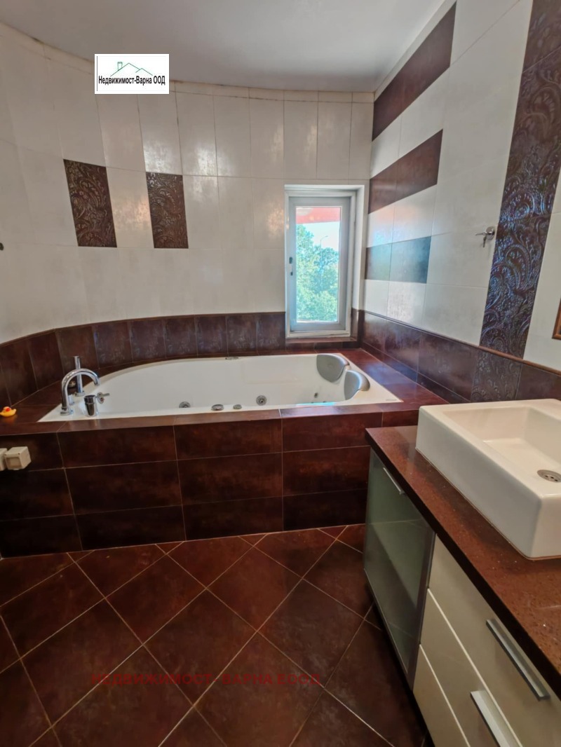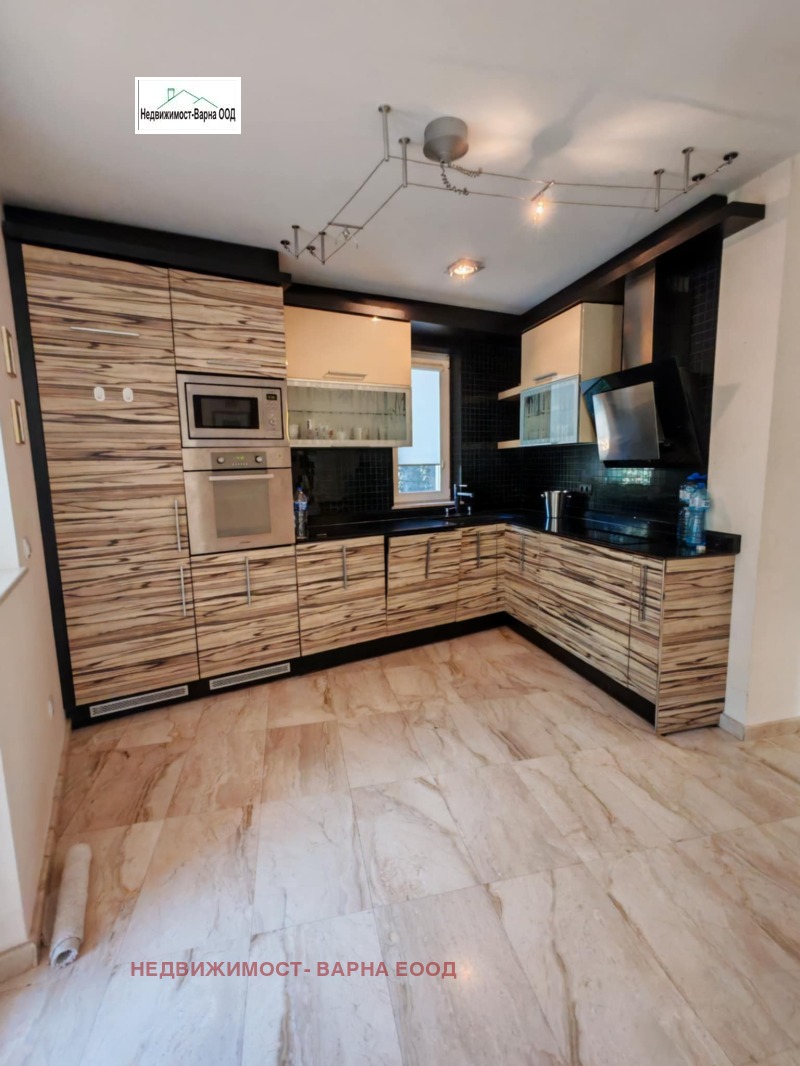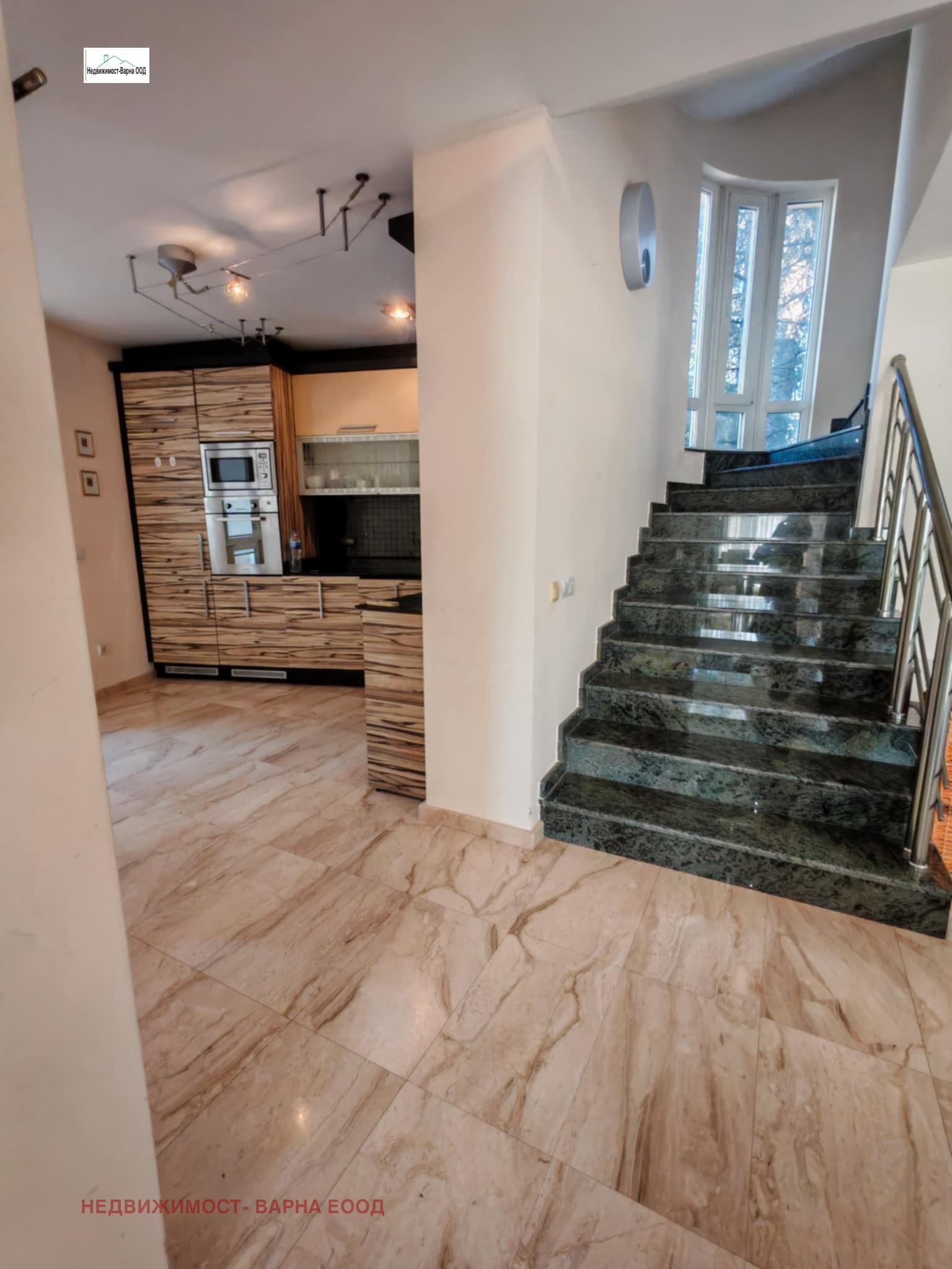 Кантора Недвижимост- Варна отдава под наем луксозна къща в м. Евсиноград Варна. Имота е на три етажа и представлява: партер - двоен гараж, две паркоместа, антре, баня + тоалет, помощно помещение за персонал, стълбище към етаж 1. Етаж 1 - хол на 3 нива - дневна част с камина, трапезария с голяма маса за 8 човека, кухня, тоалет, стълби към 2 етаж, Етаж 2 - родителска спалня със собствена баня с вана и душкабина, голям гардероб, тераса, трето ниво - три големи спални, баня + тоалет и стълби към покривна тераса с барбекю зона и навес от който се открива разкошна панорама към морето. Имота има поставени фотоволтаични панели които захранват бойлер с вместимост 200л, градина във вътрешния двор с капково напояване и розариум, две паркоместа за гости. Обзаведена и обурудвана с всичко необходимо, отдава се дългосрочно. Огледи всеки ден, ключ в офиса