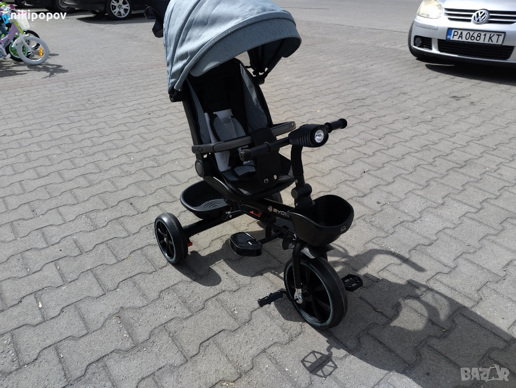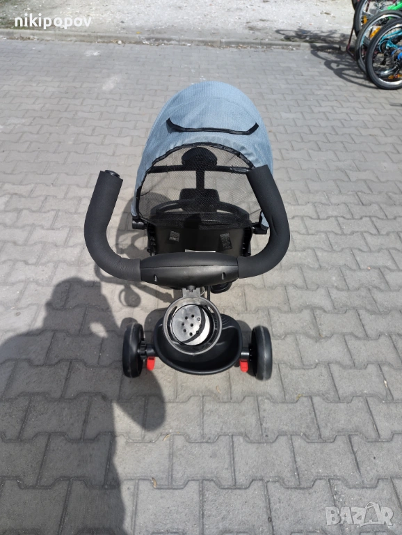 • Адаптивни компоненти: Можете лесно да премахнете дръжката за родителски контрол, сенника и предпазния борд, превръщайки триколката в идеалното превозно средство за самостоятелно изследване на света, когато Вашето дете е готово.