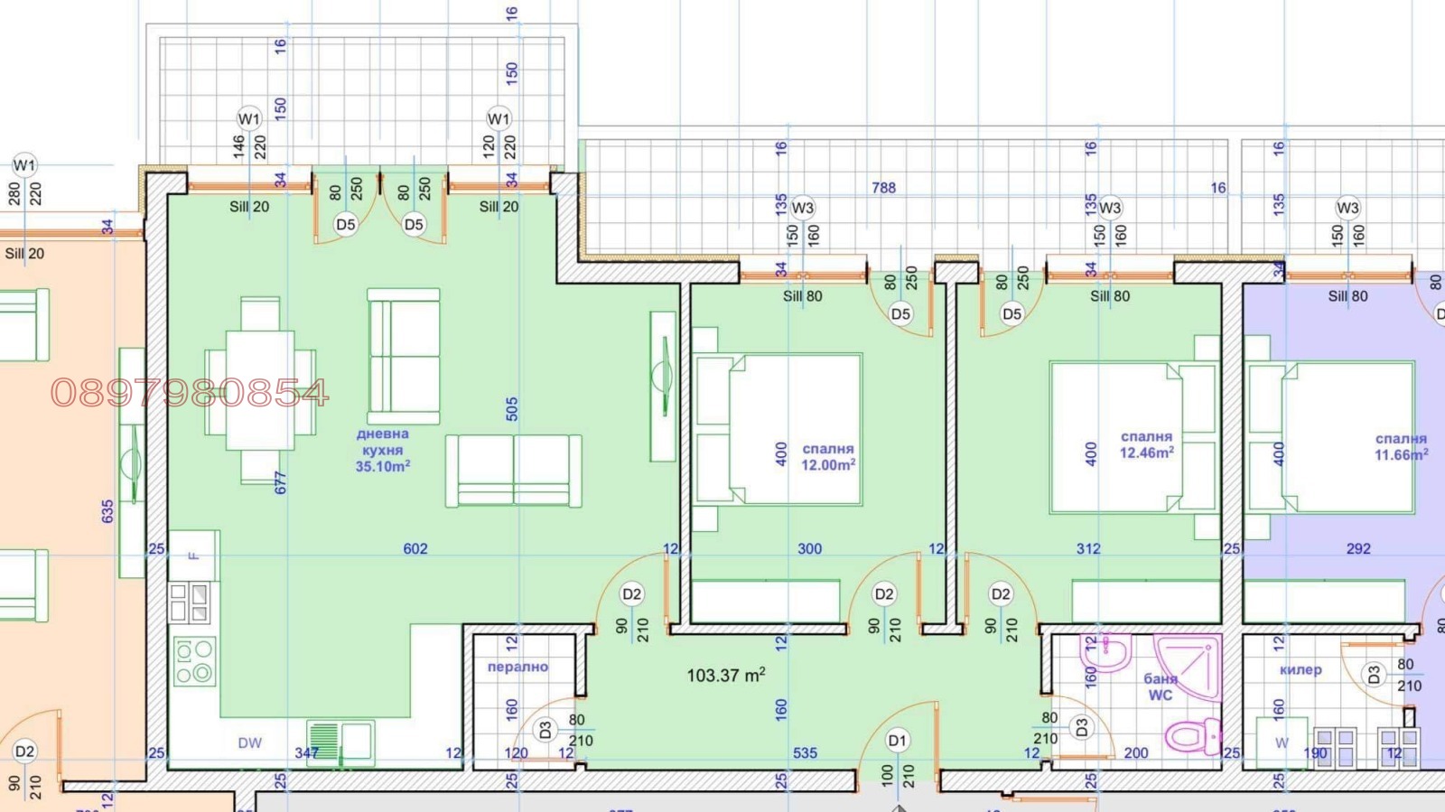 Апартаментът е снабден с трифазен ток, което позволява използването на по-мощни уреди. Благодарение на това бойлерът е трифазен и затопля водата постоянно няма да останете без топла вода, както често се случва при обикновените бойлери. Това е голямо предимство, особено за семейства или когато няколко души ползват банята последователно.