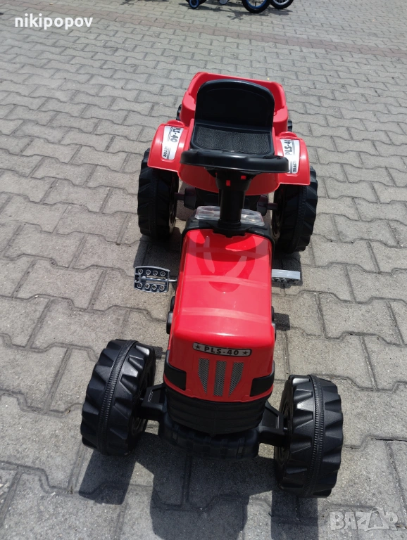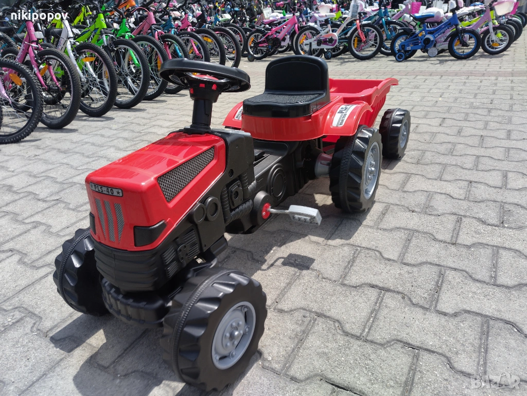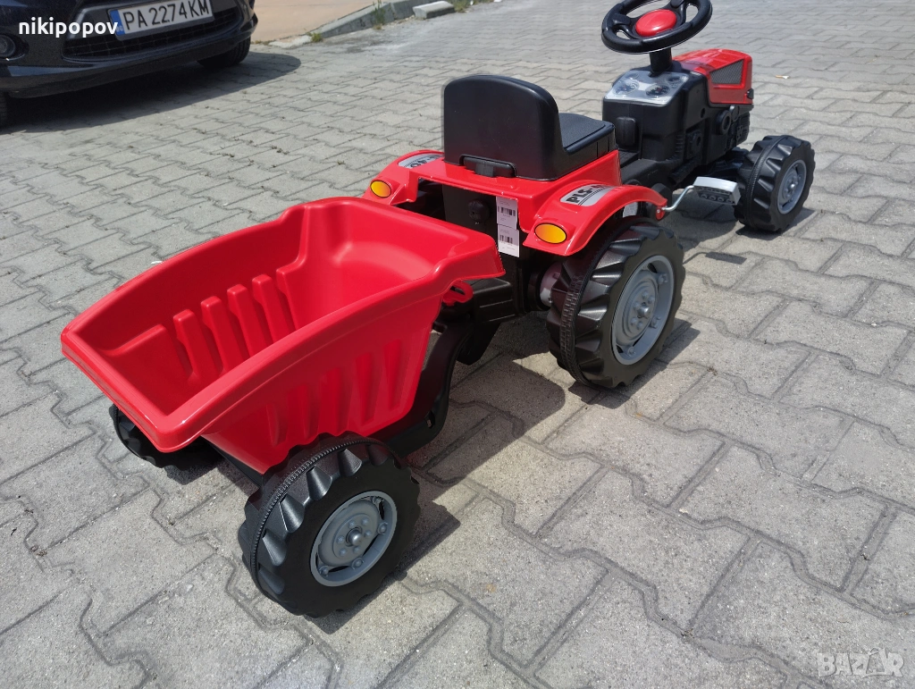 *Тракторът е подходящ за употреба от деца, навършили 3 години, като може да бъде използван на двора или в градината. Размерите му са 51 x 143 x 51 сантиметра, а максималната тежест, която може да понесе, е 50 килограма.