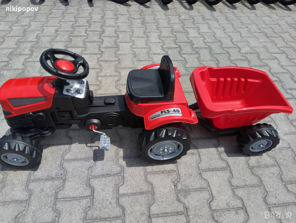 *Ако за детето ви представляват интерес различните машини, строителни и селскостопански и съоръжения, то този страхотен трактор с ремарке, произведен от Pilsan, със сигурност ще му хареса! Продуктът е изработен от висококачествени материали, а в задния му край е разположено ремаркето. Задвижването на съоръжението се осъществява посредством педали, а за по-голямо удобство на детето, кормилната система се върти с лекота. В ремаркето малчуганът може да натовари различни свои принадлежности или играчки, за да ги пренеса от едно на друго място.