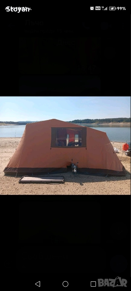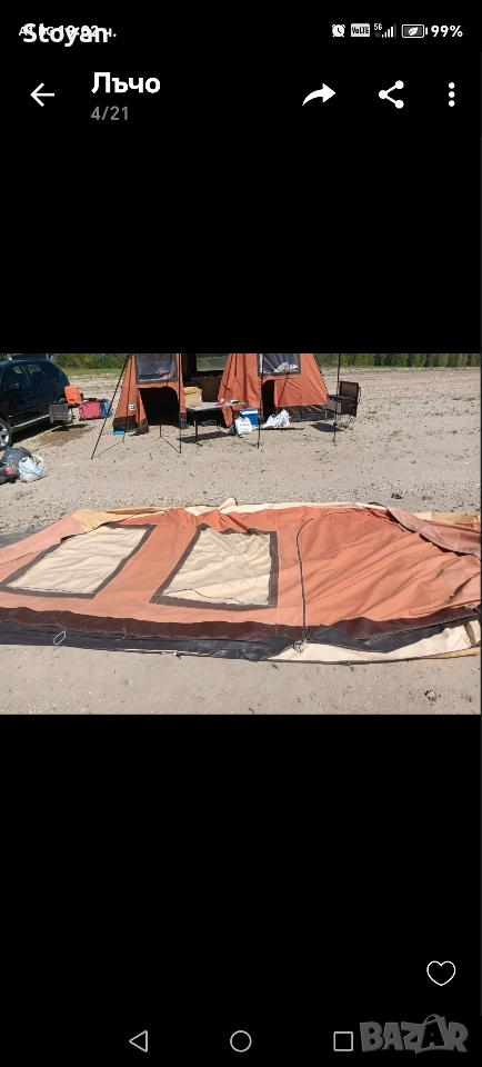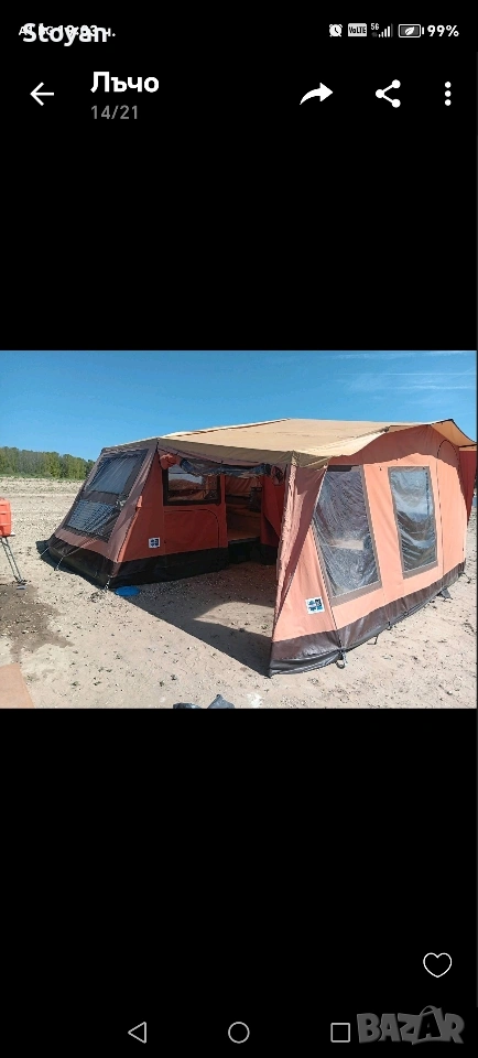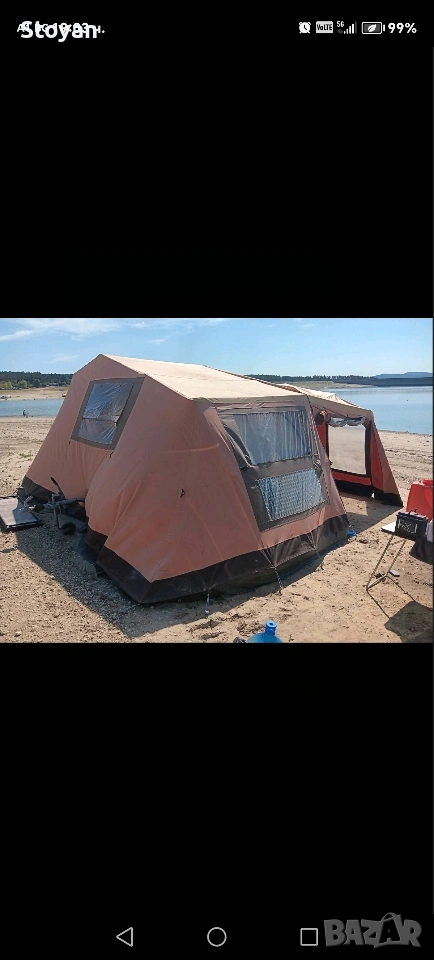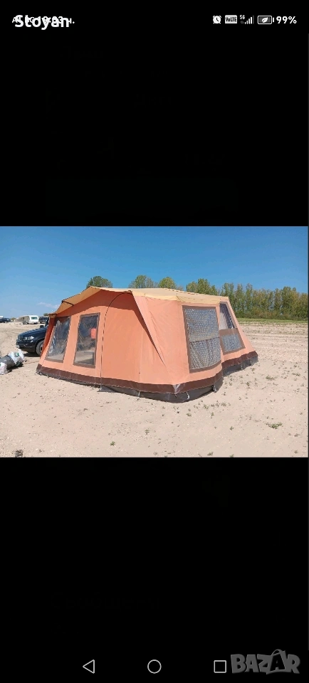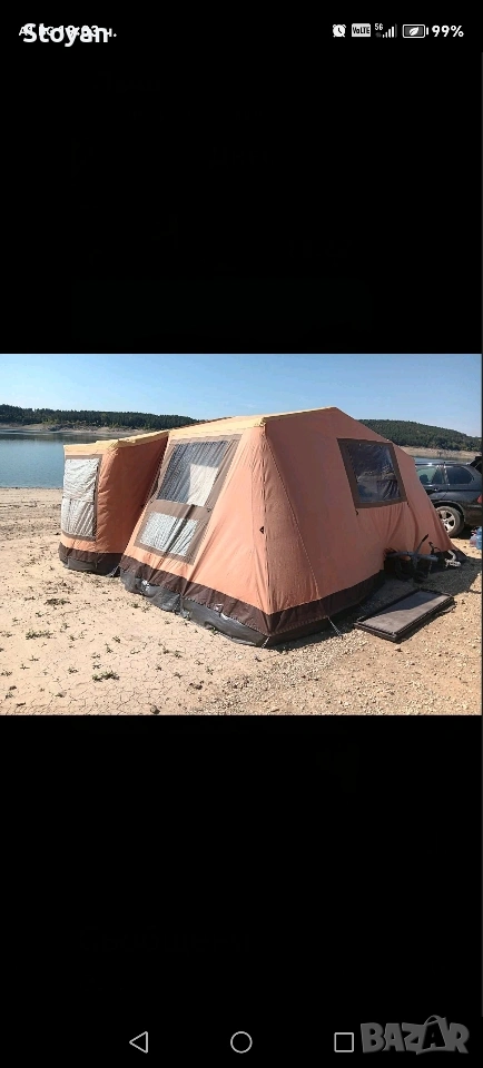 Ремарке Палатка с 2 стаи и тента 3 газови котлона 6 легла с регистрация в перфектно състояние н. Минава преглед на 2 години данъка е 5 лева