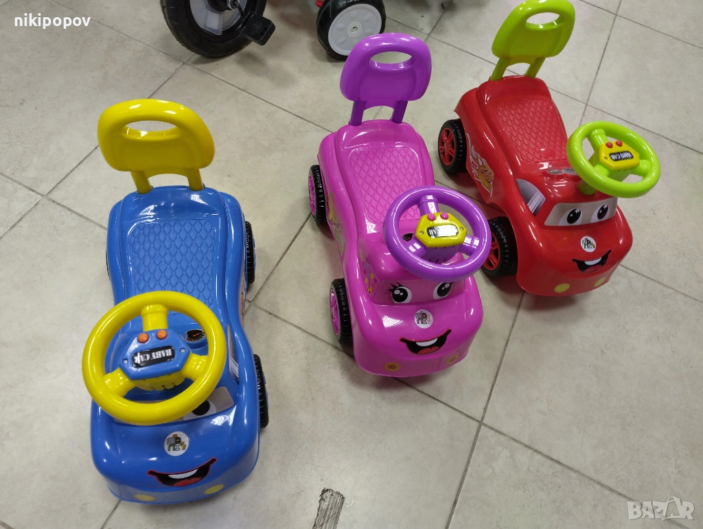 *Зарадвайте Вашия малчуган със страхотната кола за бутане на Moni Toys. Тя е с разноцветен и много симпатичен дизайн, изработена е от висококачествена пластмаса и има музикални бутони на кормилото. За максимална сигурност на малкия шофьор, количката има практична облегалка, която да го защитава от преобръщане назад. С количката детето ви ще тренира фината си моторика и много ще се забавлява.