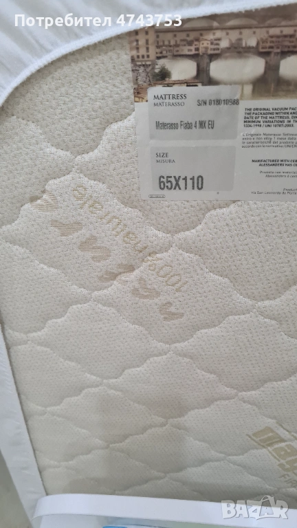 Към леглото подарявам детски матрак-като нов, протектор, повивалник и други!