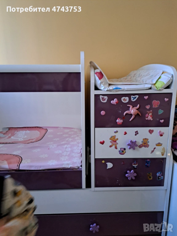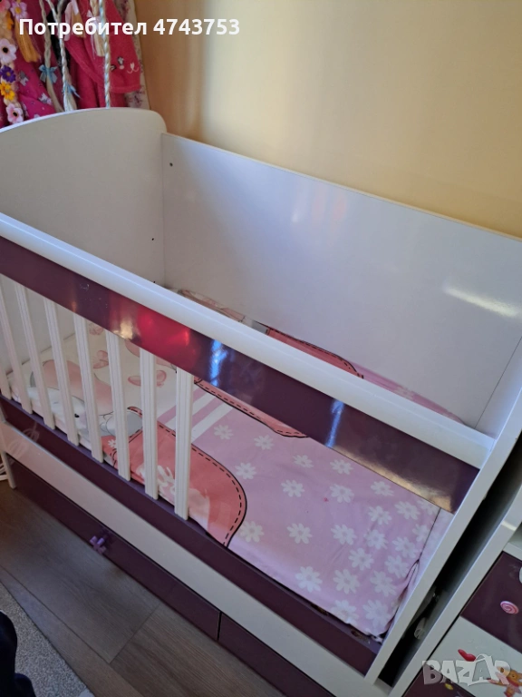 - Бебешко легло с многофункционален шкаф - външни размери: 159х72х90,5 см.