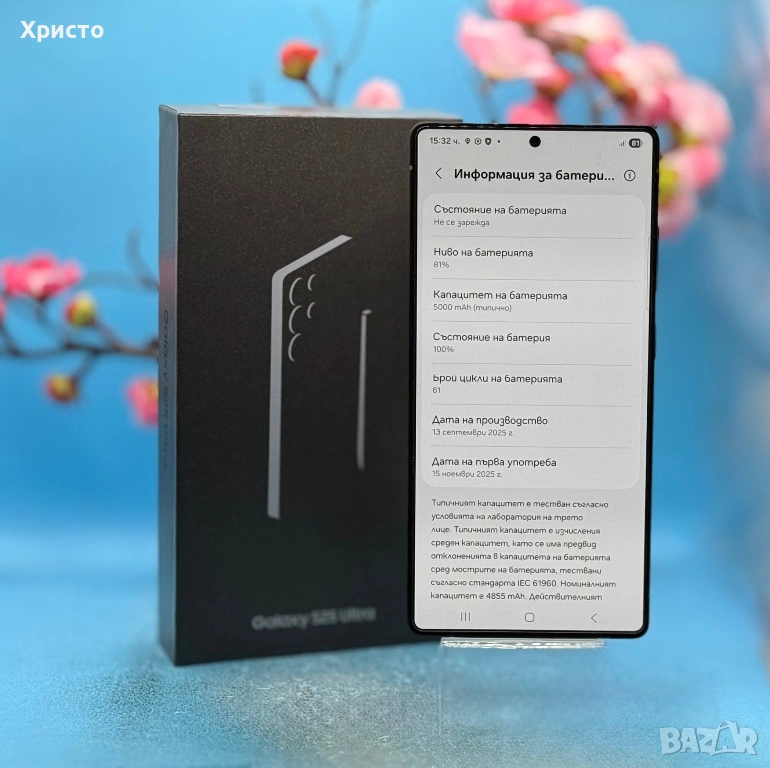 Продава се в пълен комплект: кутия, документи, кабел, оригинален адаптер, плюс няколко гръбчета като подарък. Циклите на зареждане, може да се видят на една от снимките. Без бартери!!!