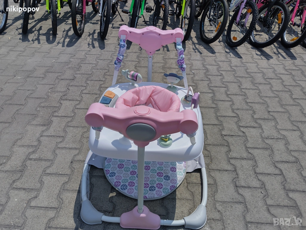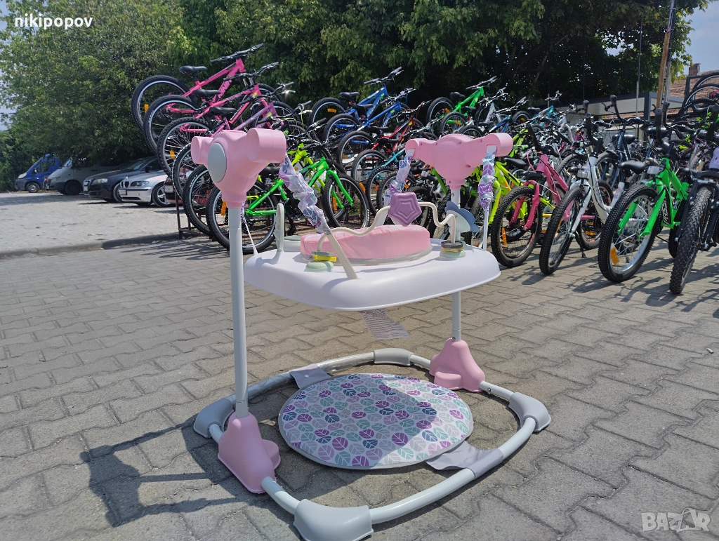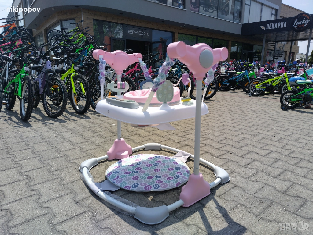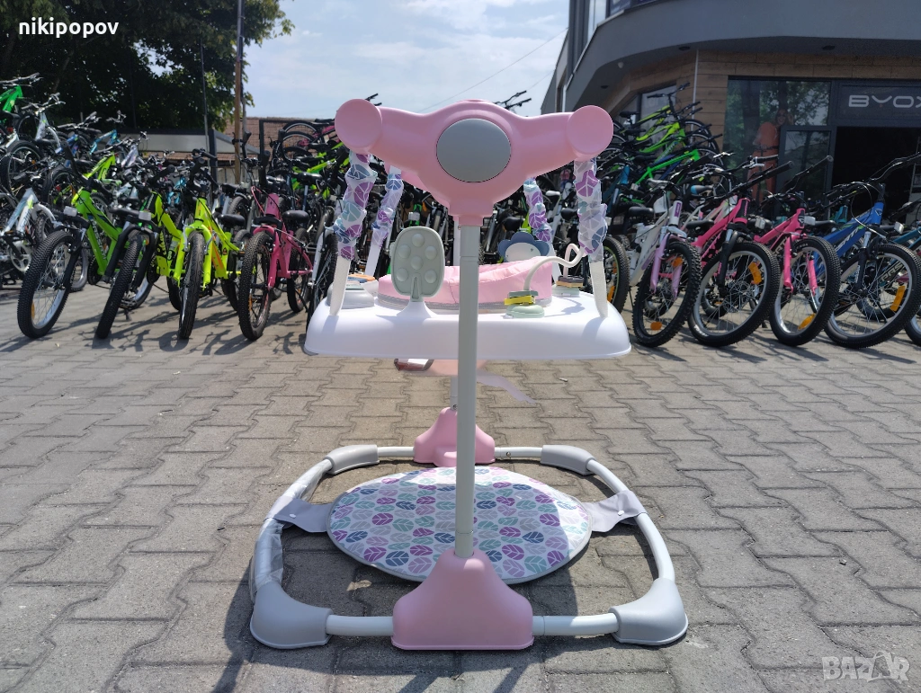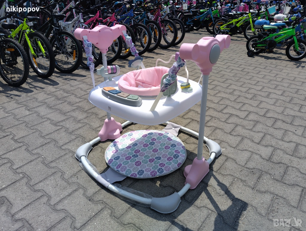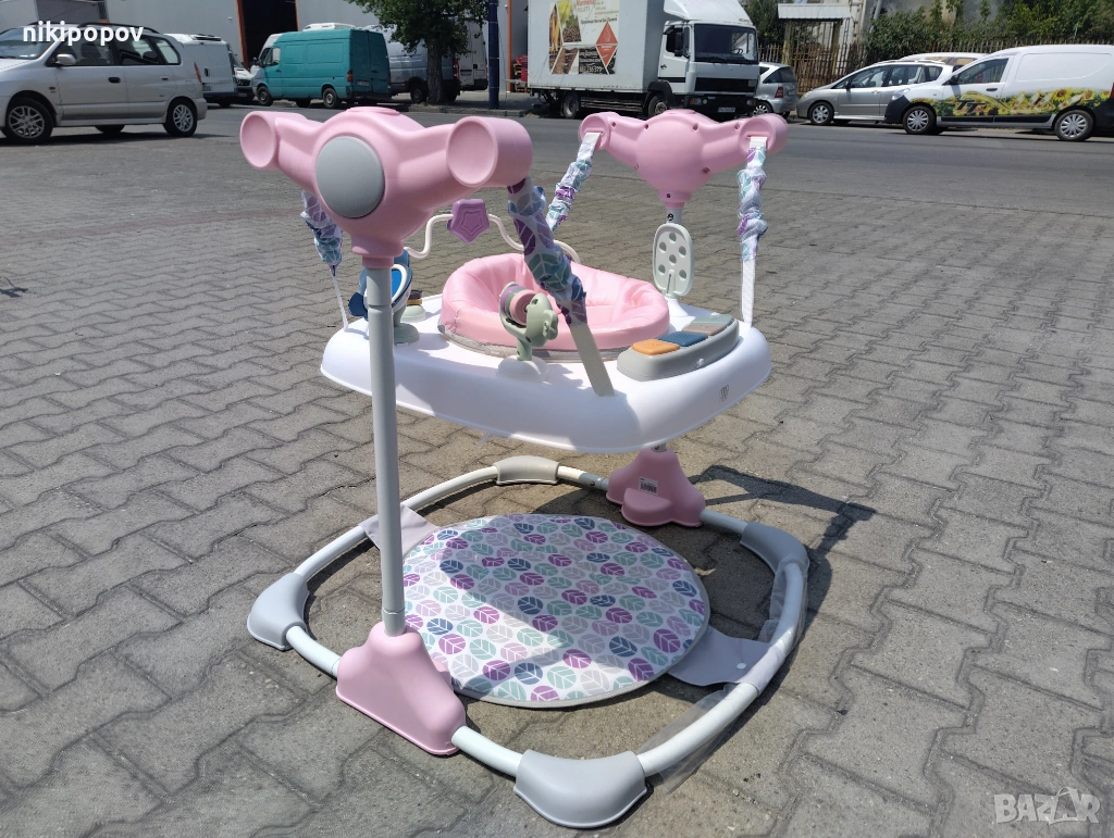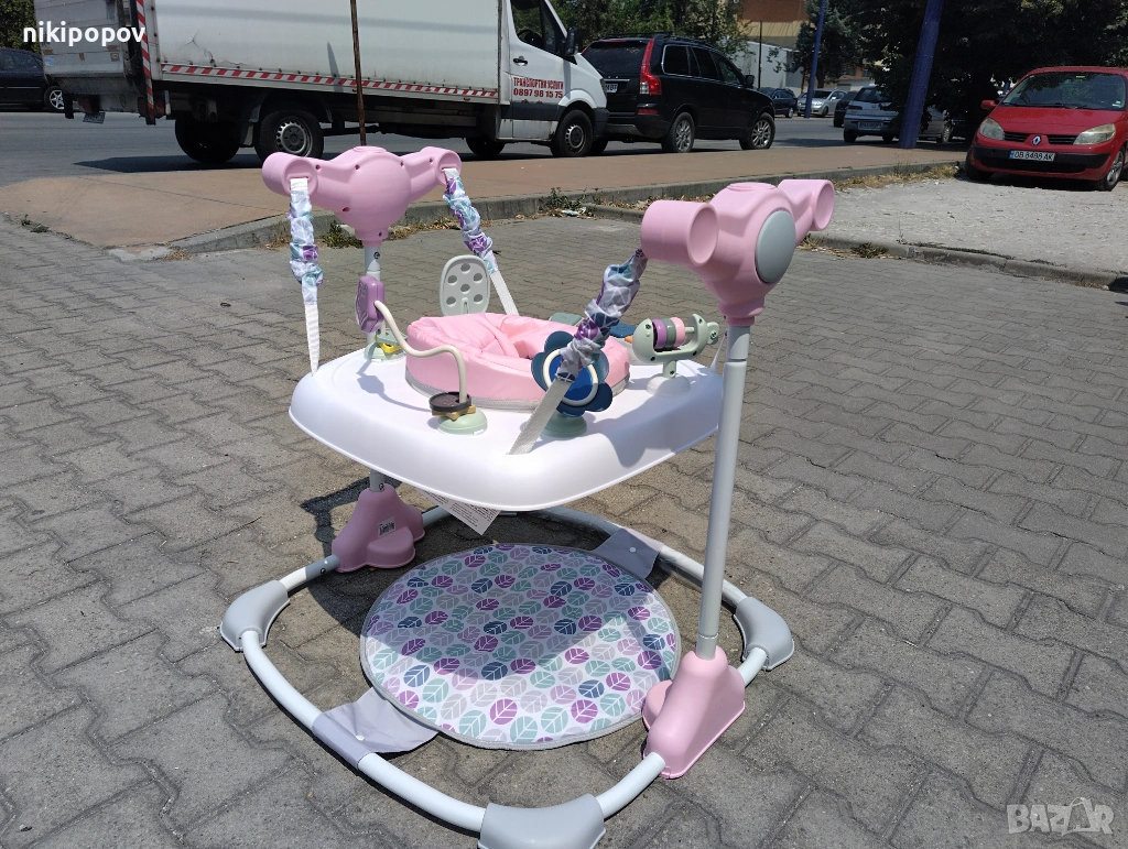 • Въртящата се на 360 градуса седалка позволява на детето да изследва играчките около себе си и да се наслаждава на забавленията от всички посоки.