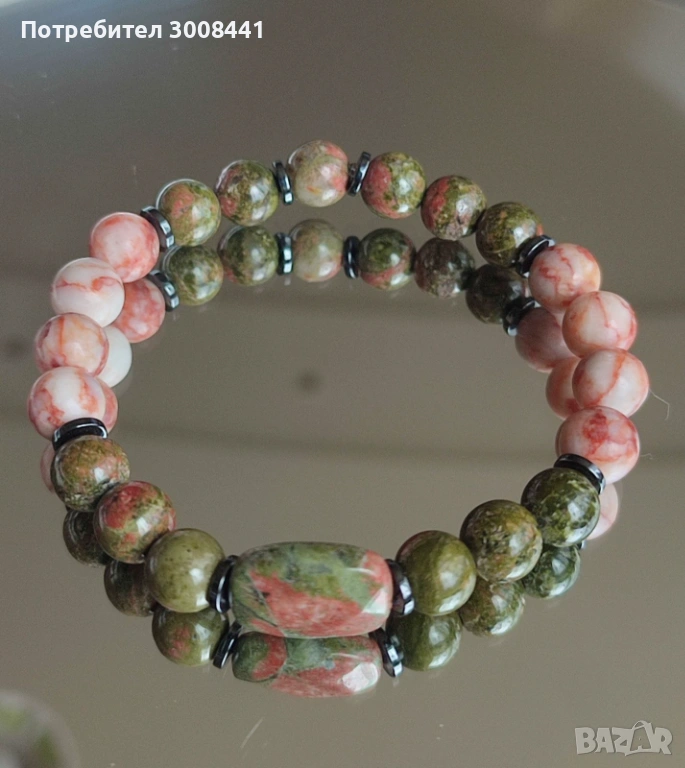 Послание :Тази гривна е създадена за моментите, в които имаш нужда от стабилност, опора и връщане към себе си. Унакитът ти носи меко възстановяване и вътрешен баланс, Червеният Пикасо камък – сила и устойчивост, а Хематитът – сигурност и заземяване. Тя ни напомня, че тялото знае как да се възстановява, а ти имаш силата да стъпваш уверено и спокойно напред.