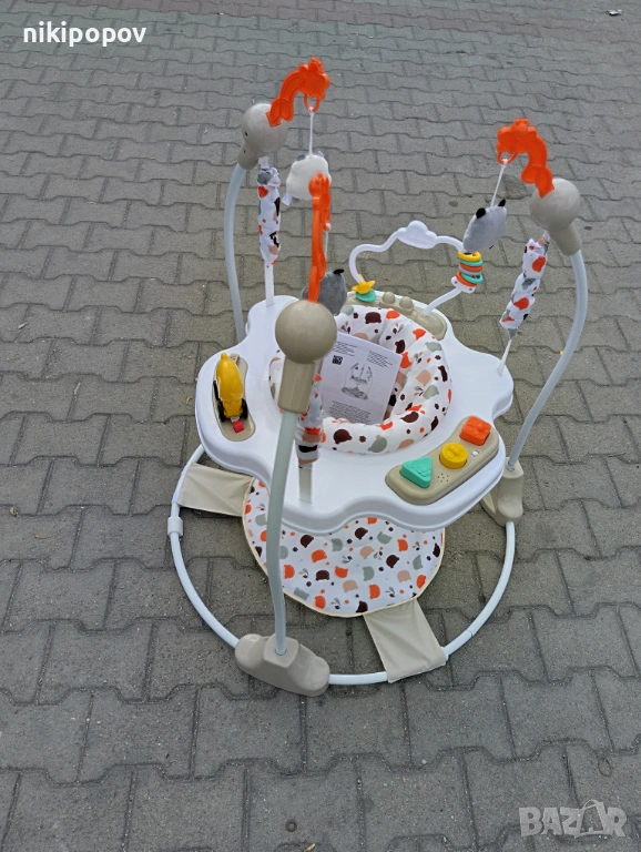 -Моделът разполага и с музикално табло - с бутони, активиращи се светлини, звуци и мелодии. Седалката има функция за въртене от 360 градуса, регулиране на височината в 3 степени.