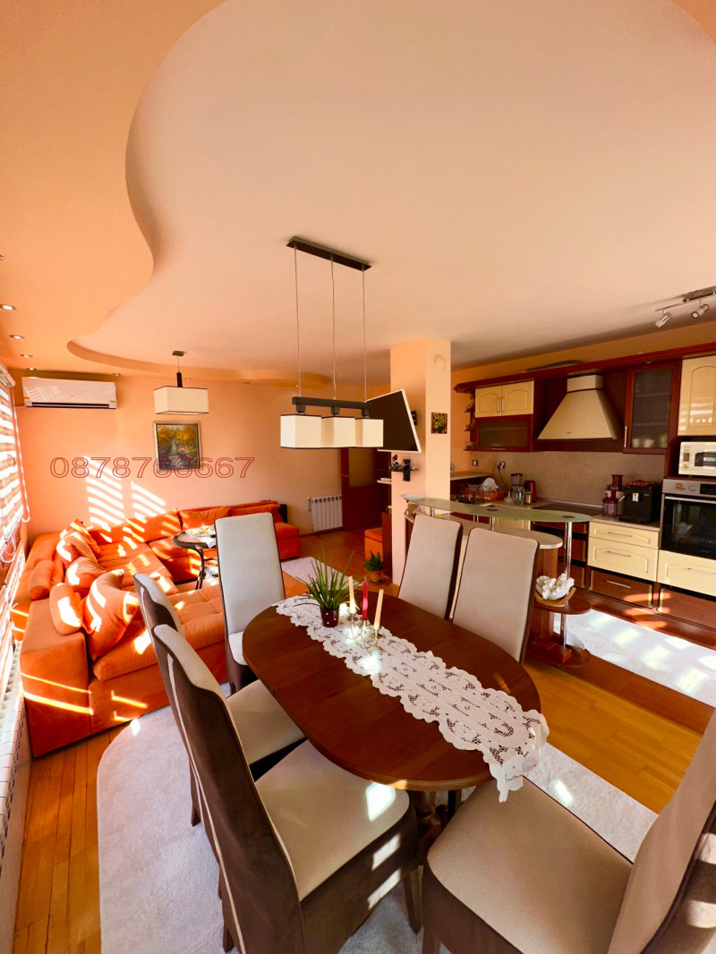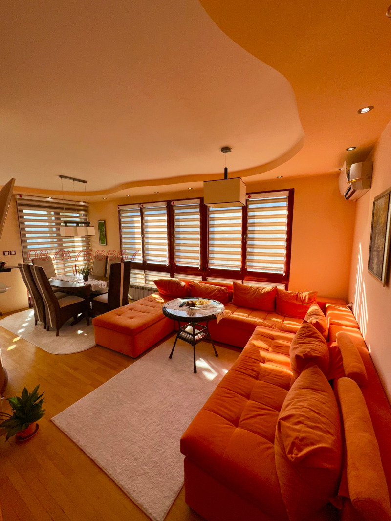 Имотът е изпълнен с висококачествени материали: дограма от естествено дърво, кухня от естествено дърво, паркет от естествено дърво, както и висококачествени мебели. Отоплението е решено с електрически котел и парно с радиатори, допълнено от два климатика Fujitsu. Апартаментът разполага и с две печки с фурна.