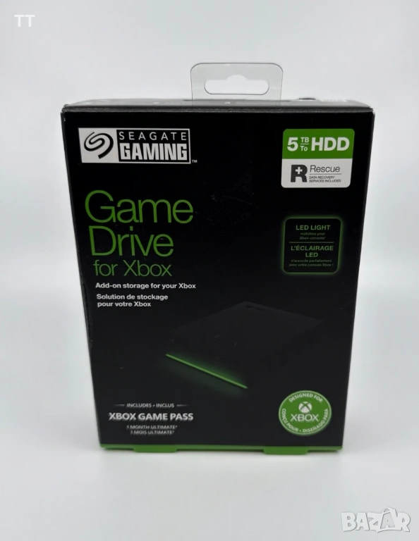 Външният твърд диск Seagate Game Drive за Xbox® е правилният избор по няколко причини, включително надеждна производителност, сертифицирана за Xbox, и обширни опции за съхранение. Той предлага до 5 TB пространство за съхранение на над 100 игри. С проста Plug-and-Play настройка, този външен твърд диск е проектиран за безпроблемна интеграция с Xbox Series X|S и Xbox One. Към всичко това се добавя елегантен дизайн, LED осветление и издръжлива конструкция, като Seagate Game Drive се отличава като идеалното решение за съхранение за всички Xbox геймъри.