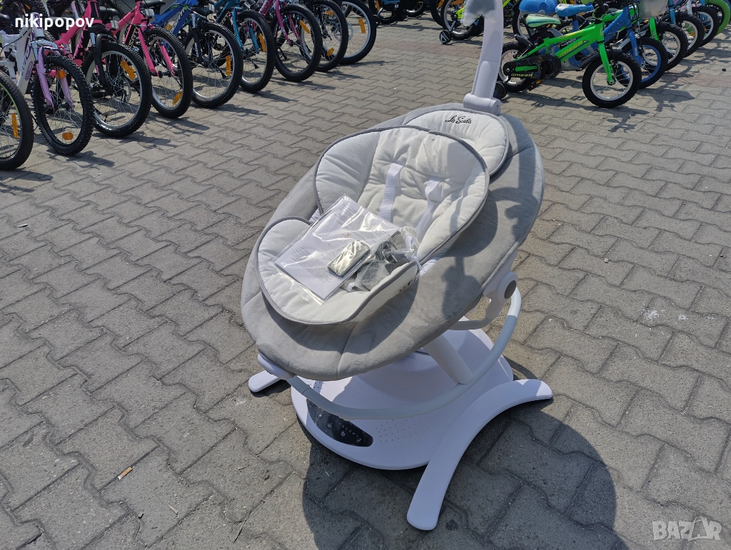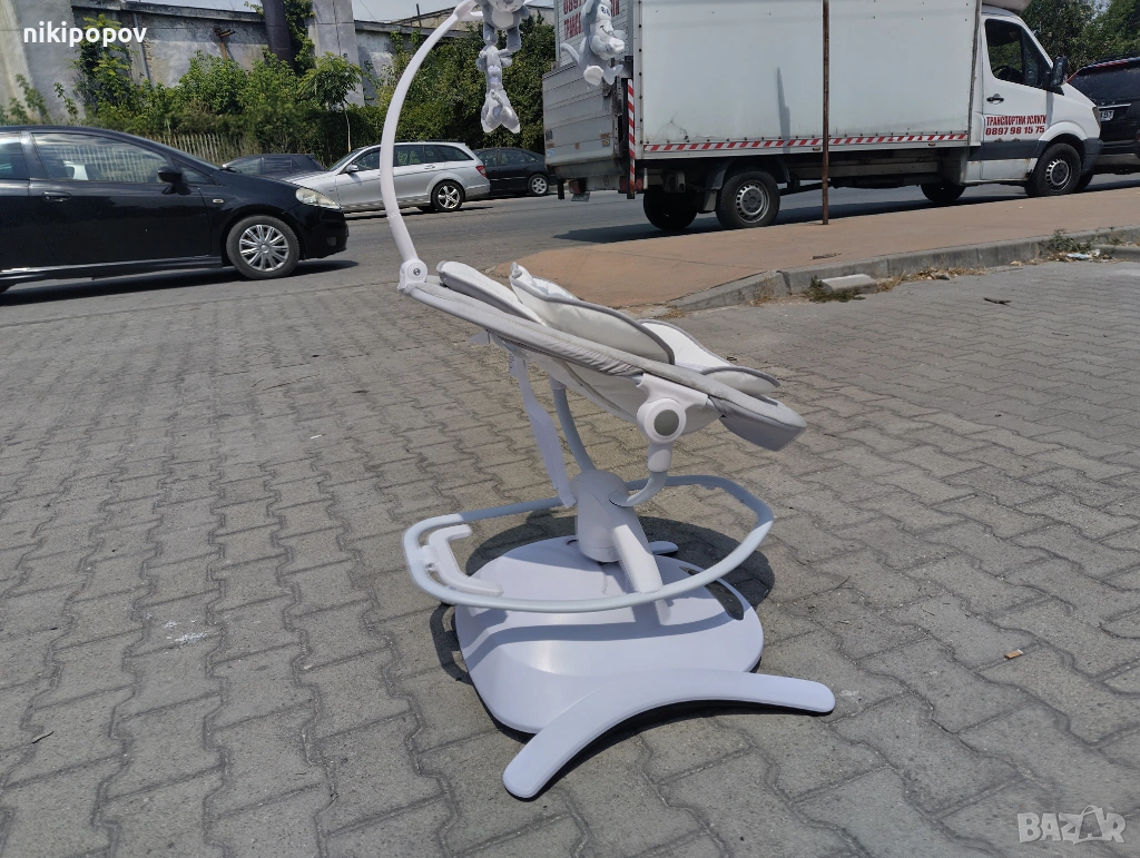 Невероятно удобство за бебета и родители - незаменима в отглеждането на малкото детенце, още от самото му раждане! Едновременно удобен шезлонг, комфортно и уютно местенце за лек сън, както и автоматично задвижваща се люлка. Меката допълнителна основа осигурява нежна прегръдка на бебчето, без да предизвиква запарване и изпотяване, с релефна възглавничка и здрави дунапренени уплътнители за странично поддържане. Коланът ви дава възможност да го обезопасите, а играчките в комплекта са закачлив аксесоар с любимо предназначение. Люлката ще бъде вашият асистент в първите 6 месеца не само вътре в дома, но на терасата, в двора, по време на ваканция.
