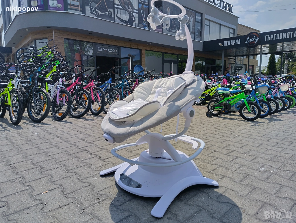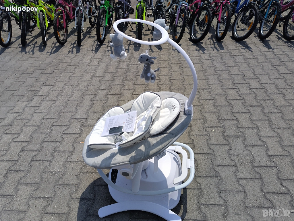 Настанете удобно малкия любим човек в пухкавата основа, защитете го с меко коланче, настройте някоя от петте степени за автоматично залюляване и пуснете нежна мелодия. Бебето ще бъде спокойно и щастливо, а вие ще успеете да си отдъхнете или да свършите някоя от задачите за деня.