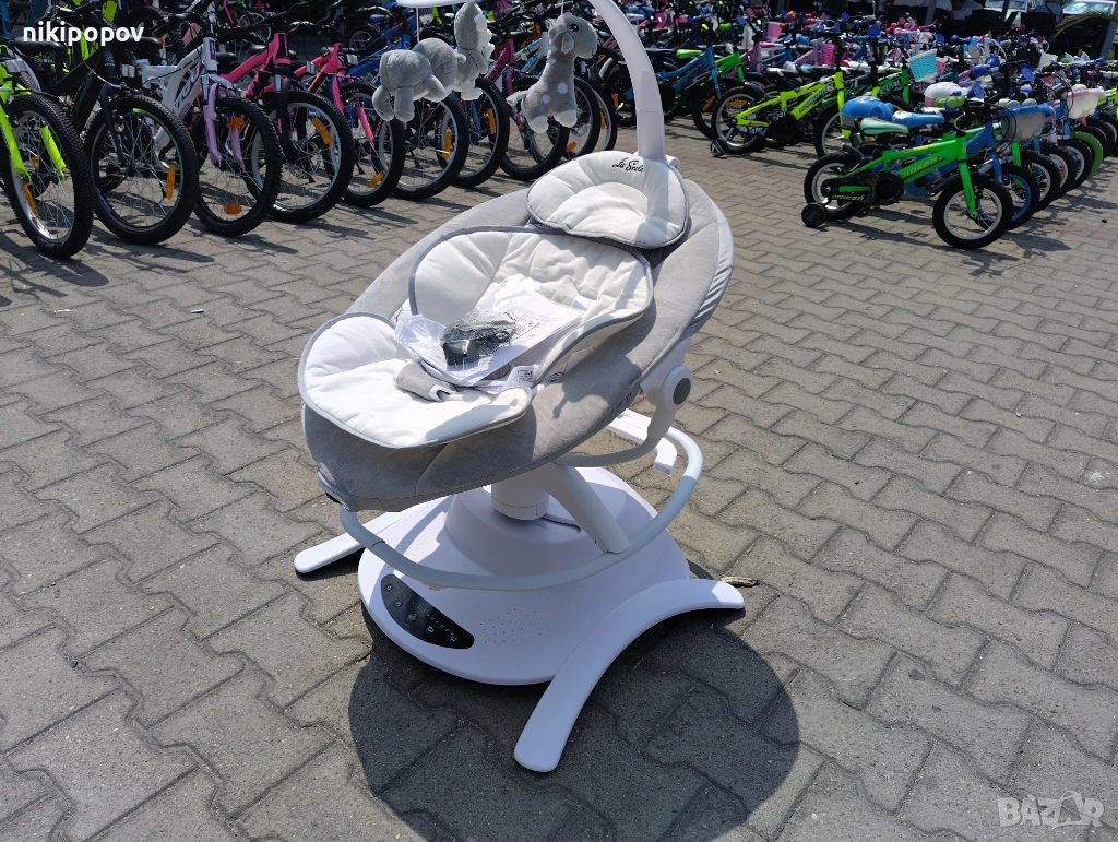 Невероятно удобство за бебета и родители - незаменима в отглеждането на малкото детенце, още от самото му раждане! Едновременно удобен шезлонг, комфортно и уютно местенце за лек сън, както и автоматично задвижваща се люлка. Меката допълнителна основа осигурява нежна прегръдка на бебчето, без да предизвиква запарване и изпотяване, с релефна възглавничка и здрави дунапренени уплътнители за странично поддържане. Коланът ви дава възможност да го обезопасите, а играчките в комплекта са закачлив аксесоар с любимо предназначение. Люлката ще бъде вашият асистент в първите 6 месеца не само вътре в дома, но на терасата, в двора, по време на ваканция.