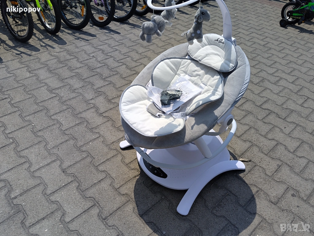 Настанете удобно малкия любим човек в пухкавата основа, защитете го с меко коланче, настройте някоя от петте степени за автоматично залюляване и пуснете нежна мелодия. Бебето ще бъде спокойно и щастливо, а вие ще успеете да си отдъхнете или да свършите някоя от задачите за деня.
