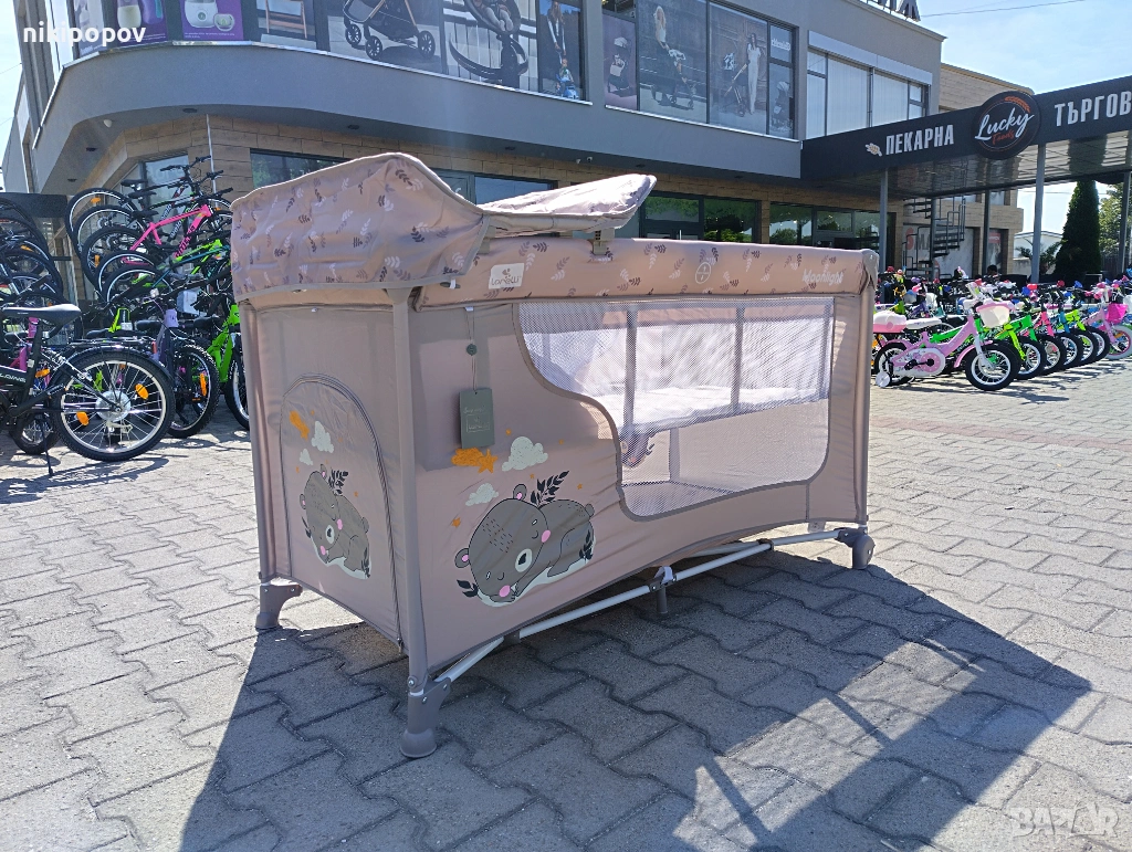 LORELLI Детска кошара на 2 нива с повивалник MOONLIGHT бежов