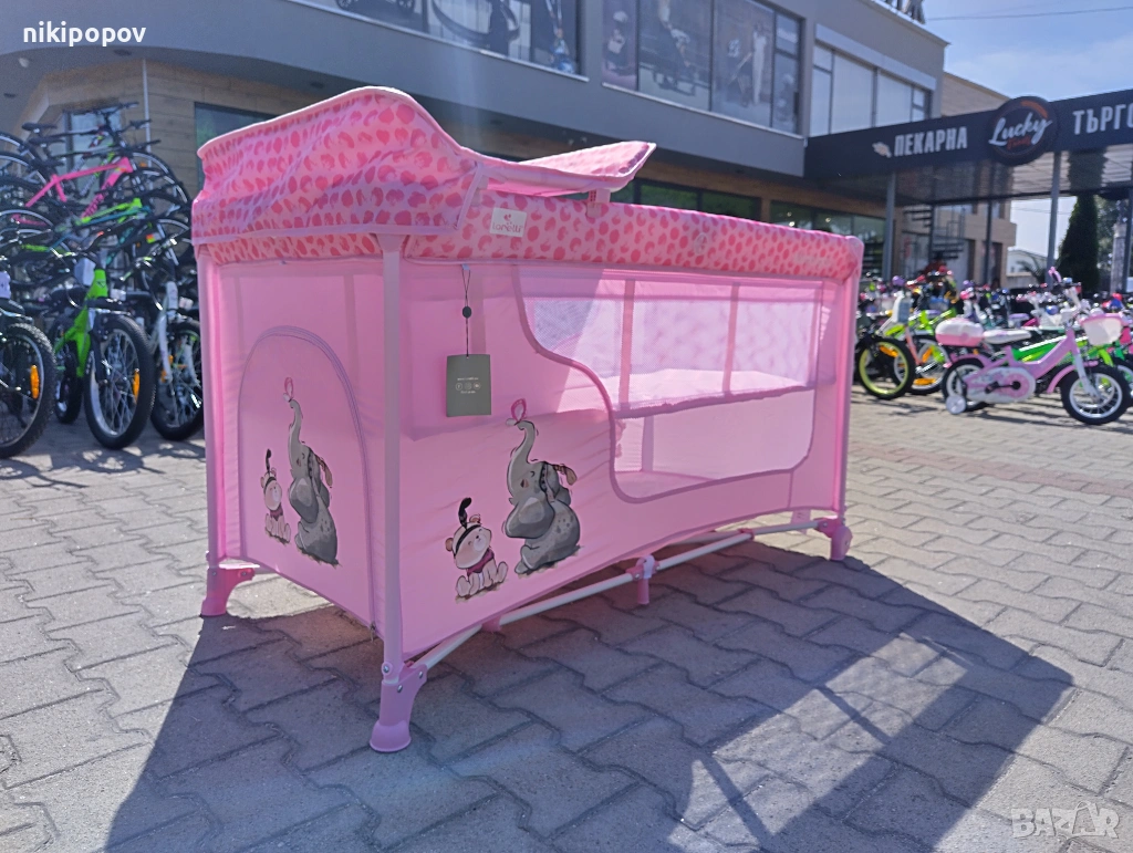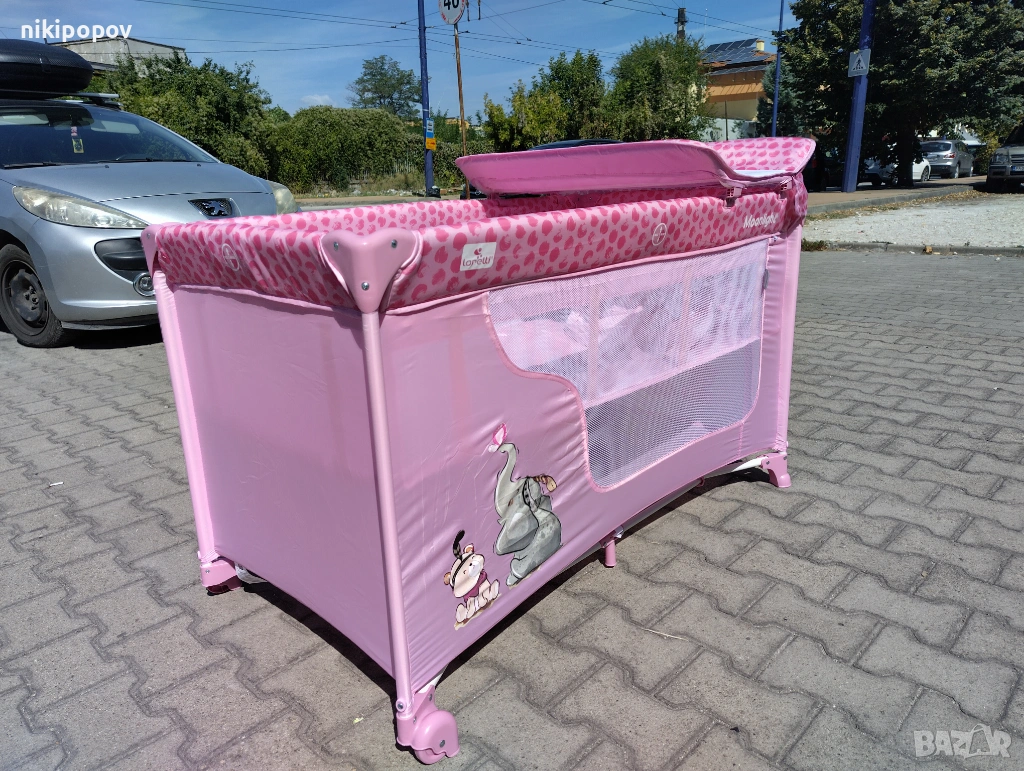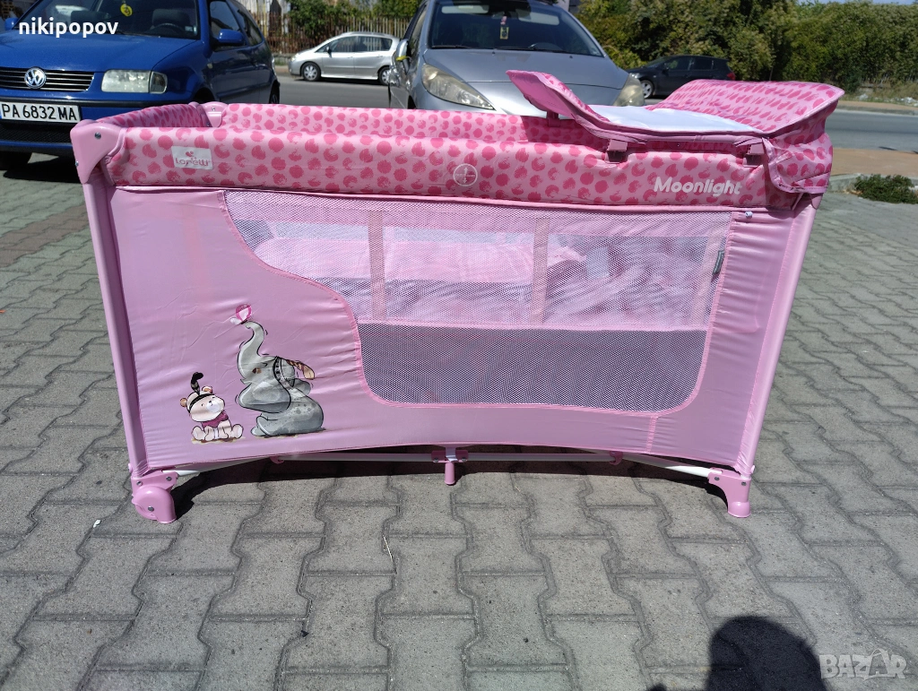 LORELLI Детска кошара на 2 нива с повивалник MOONLIGHT розов