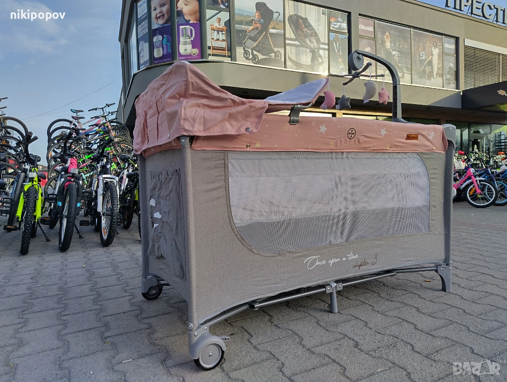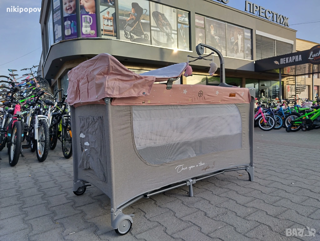 *Once upon a time 3 е бебешка кошара, която ще осигури спокоен и уютен сън на Вашето бебче. Тя е специално изработена за новородени бебчета и деца до достигането им на 14 kg. Кошарката е изключително лесно сгъваема и компактна, подходяща не само за вкъщи, а и при пътувания. Разработена е с прозрачни страници, които дават възможност да наблюдавате детето по всяко време, докато то е вътре. Има 2 нива на регулиране на височината на матрака и омекотено ниво за повиване на пелените, където ще може и да измерите височината на вашето съкровище. Продуктът е снабден със забавен музикален гриф с 4 цветни играчки, страничен отвор с цип, който позволява на детето да влиза и излиза по всяко време. Бебешката кошара разполага с 2 колелца, предназначени за лесно преместване и 2 стопера. В комплекта има чанта за лесно пренасяне и меко матраче за спане с дебелина 1.5 cm.