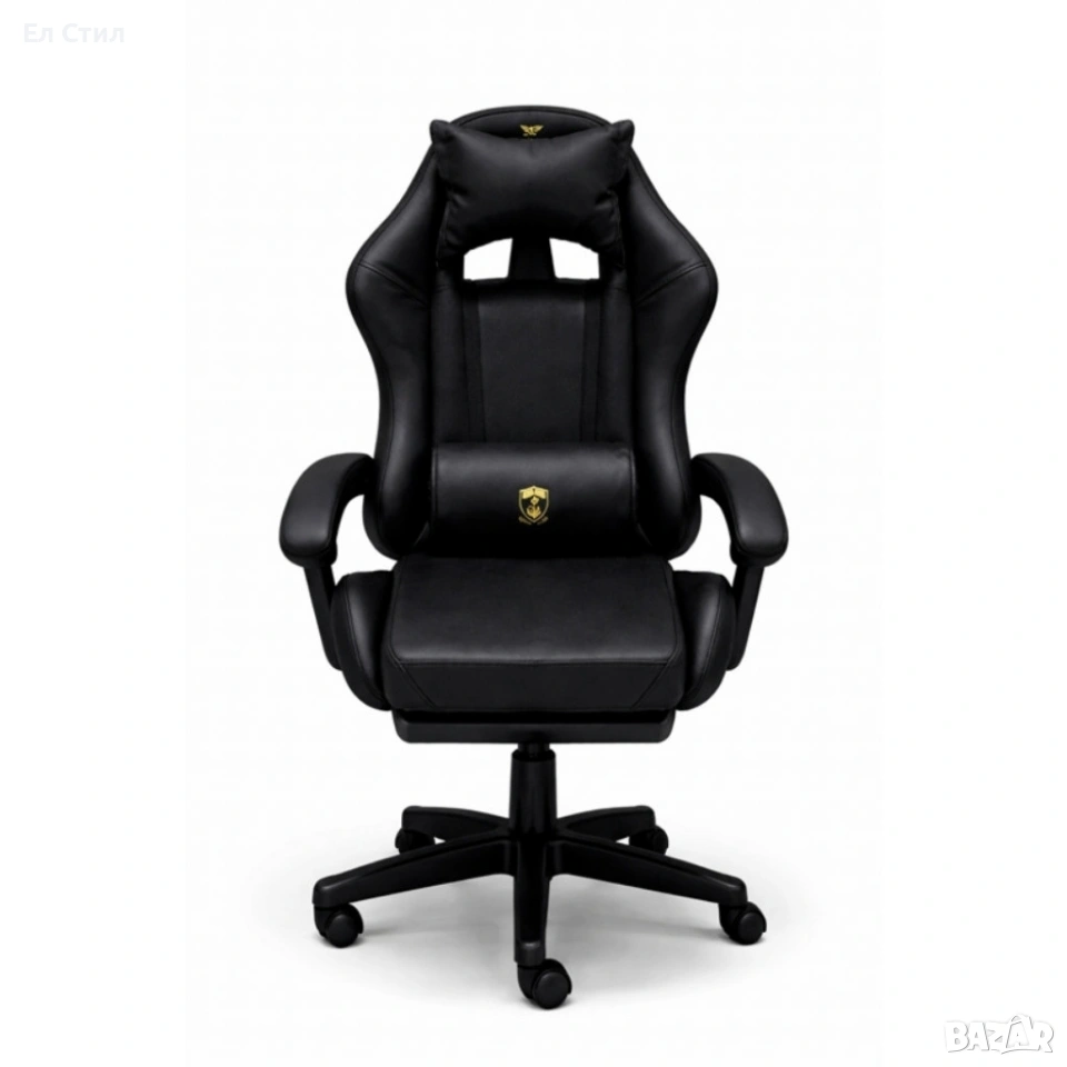 Премиум геймърски стол с масажна функция, поставка за крака и ергономична метална рамкаЧерен