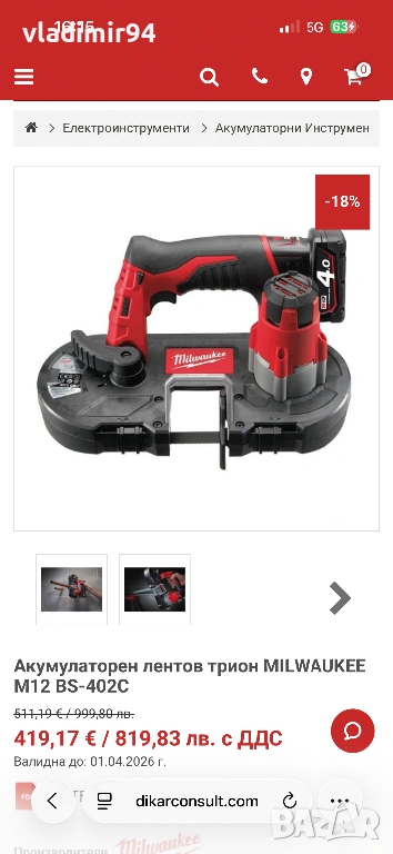Milwaukee M12 BS-402C лентов трион → Обява 53565374