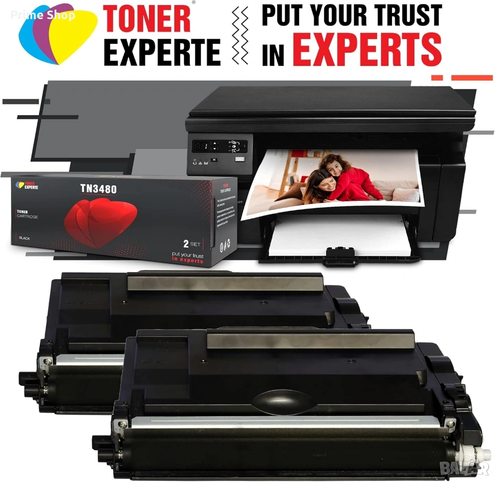 Предлаганият продукт представлява комплект от две висококачествени съвместими тонер касети TONER EXPERTE, предназначени да заменят моделите Brother TN-3480 и TN-3430. Касетите са оборудвани с най-ново поколение чипове, гарантиращи безпроблемна комуникация с принтера и пълна съвместимост. Продуктът е сертифициран по международните стандарти ISO 9001 и ISO 14001, осигурявайки надежден печат с резки и дълготрайни резултати, както и използването на безопасни за околната среда материали при производството им.