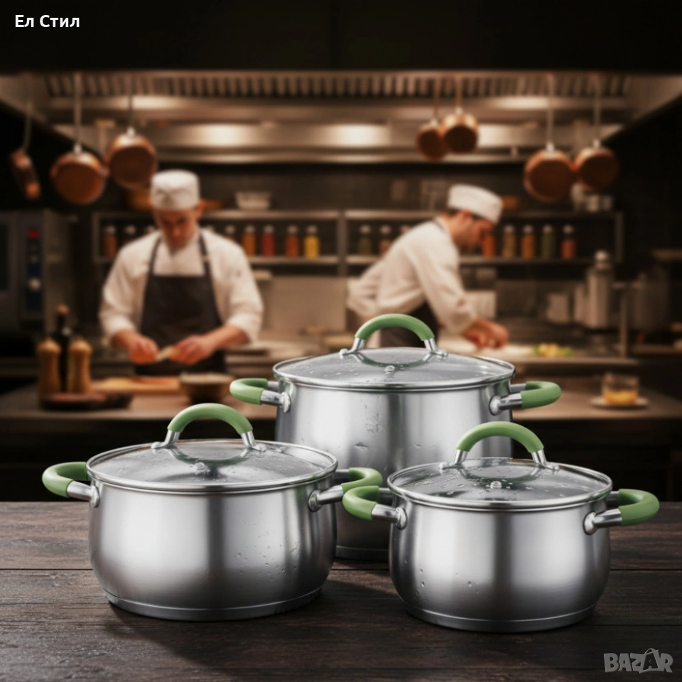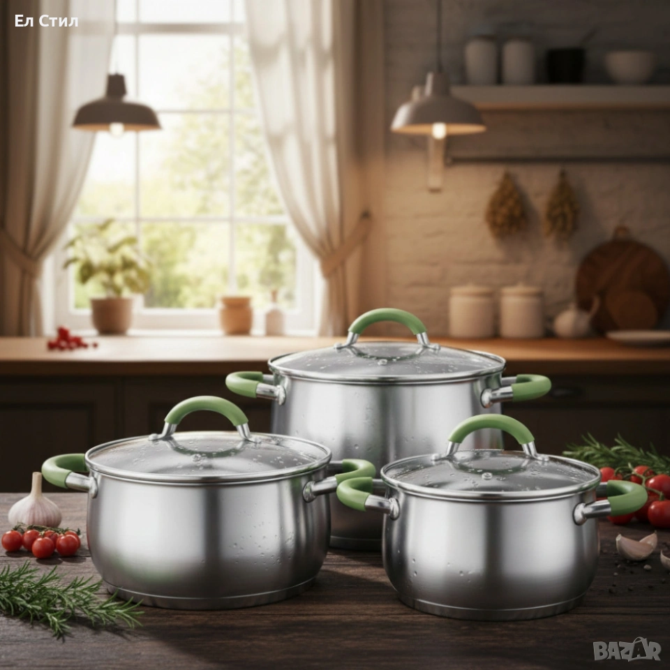 Комплект тенджери– 3 броя, 5-слойно дъно - бързо и равномерно готвене