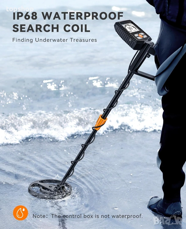 IP68 Водоустойчива бобина: Позволява безпроблемно търсене в реки, потоци и по морския бряг.