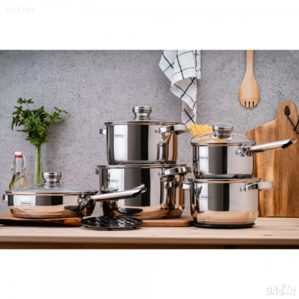 Комплект съдове, 12 части, 2 подложки, Неръжд.стомана