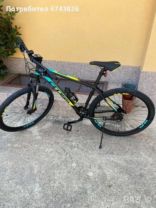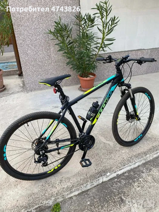 Продавам крос велосипед XDS с рамка размер L в много добро състояние. Карано е внимателно, без удари и кривини. Подходящ е за градско каране, велоалеи и леки извънградски маршрути/черни пътища. Цветът е черно с тюркоаз и жълто – много запазен и стилен.