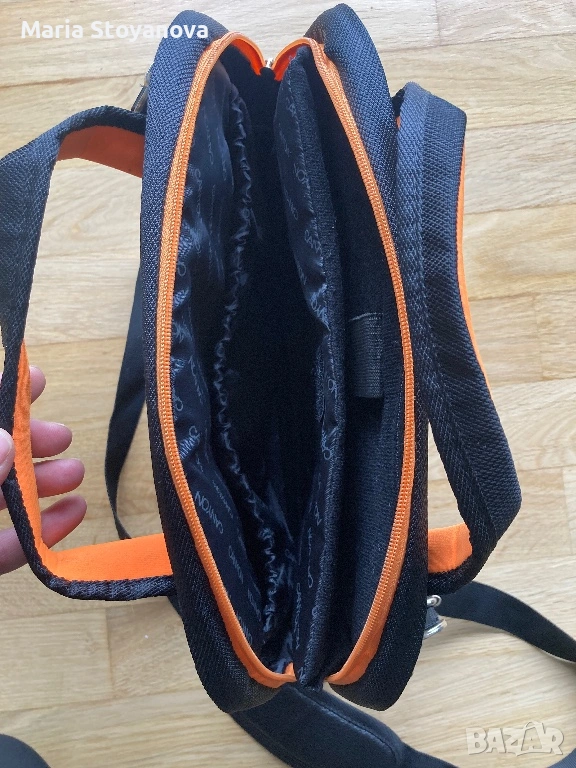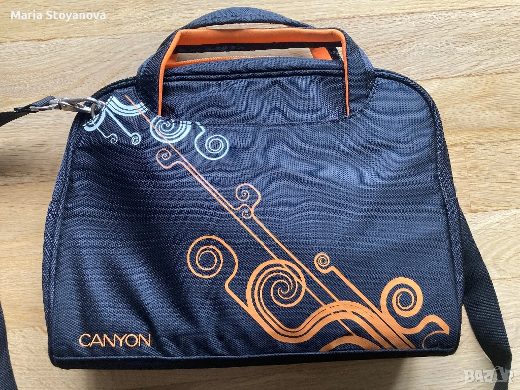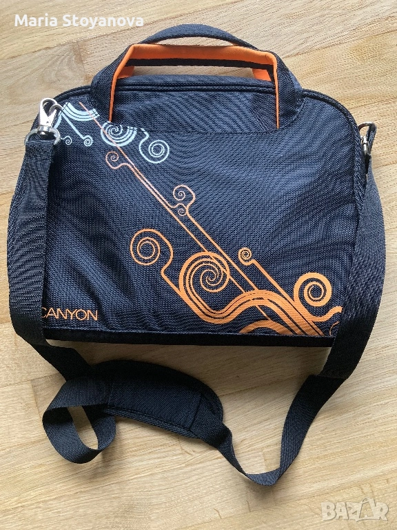 Чанта за лаптоп Canyon. Изработена е от полиестер в черен и оранжев цвят. Удобна и практична, с къса и махаща се дълга дръжка и няколко разделения вътре.