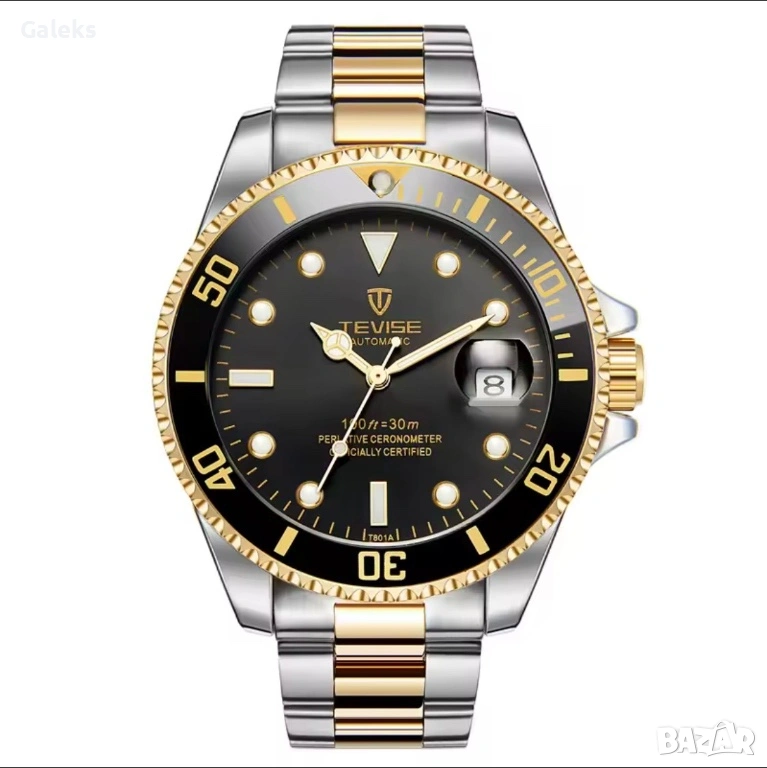 Мъжки модерен автоматичен часовник Gold Black•Tevise* /В тъмно златистата гама!