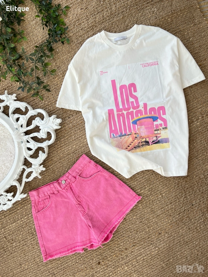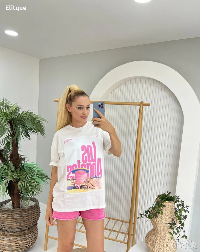 Тениска “Los Angeles” – 15€ Стилна и удобна тениска с надпис Los Angeles – перфектна за ежедневна визия и street style комбинации. 👕 Модел Овърсайз кройка Свободно и комфортно прилягане Подходяща за съчетаване с дънки, клин или къси панталонки 💶 Цена: 15€ 📦 Доставка с Еконт с опция преглед и тест 🚚 Изпращане до 3 работни дни